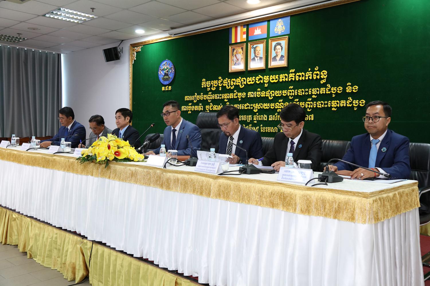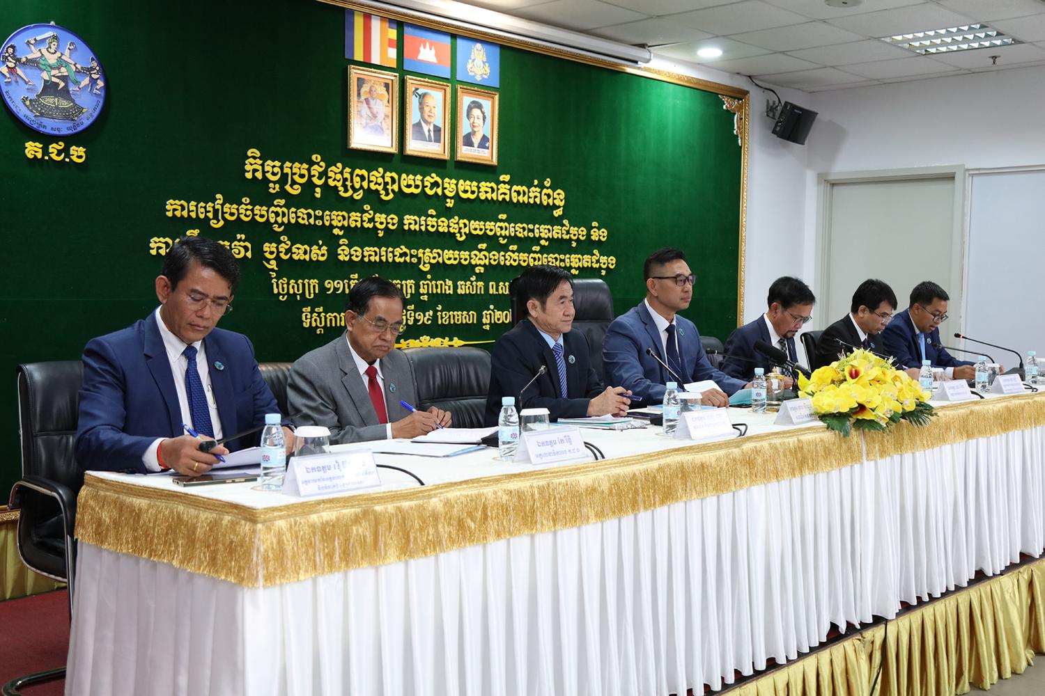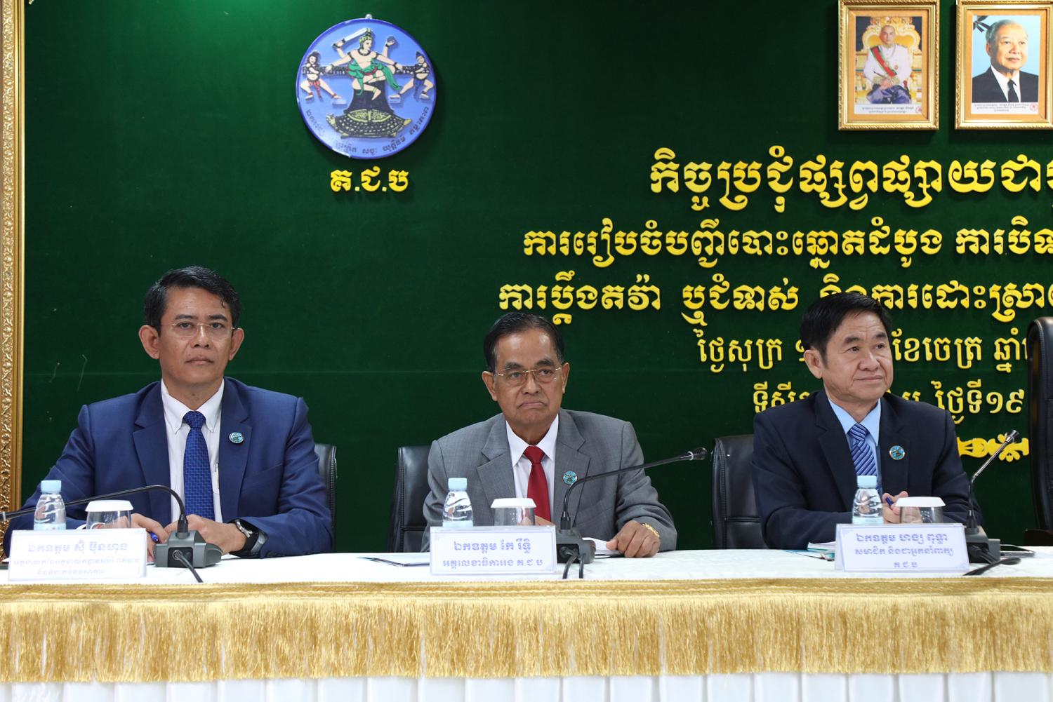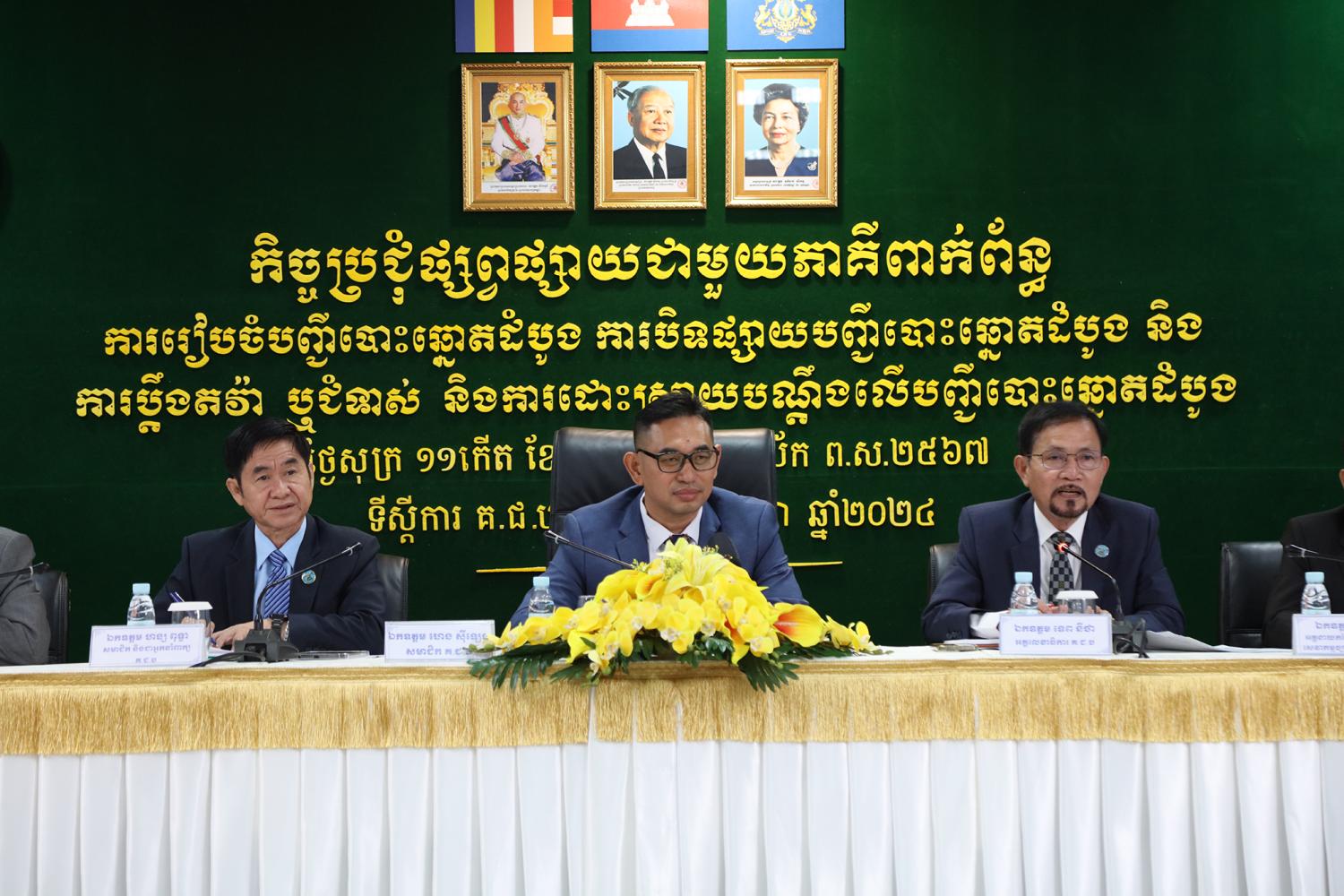 រូបភាពសកម្មភាព ឯកឧត្តម ហេង ស៊ីឡេង សមាជិកគណៈកម្មាធិការជាតិរៀបចំការបោះឆ្នោត (គ.ជ.ប) បានដឹកនាំកិច្ចប្រជុំផ្សព្វផ្សាយជាមួយភាគីពាក់ព័ន្ធ ស្ដីពីការរៀបចំបញ្ជីបោះឆ្នោតដំបូងសម្រាប់ការបោះឆ្នោតជ្រើសរើសក្រុមប្រឹក្សា អាណត្តិទី៤ ឆ្នាំ២០២៤ ការបិទផ្សាយបញ្ជីបោះឆ្នោតដំបូង និងការប្តឹងតវ៉ា ឬប្ដឹងជំទាស់ និងការដោះស្រាយពាក្យបណ្តឹងលើបញ្ជីបោះឆ្នោតដំបូង នាព្រឹកថ្ងៃទី១៩ ខែមេសា ឆ្នាំ២០២៤ នៅទីស្ដីការ គ.ជ.ប
