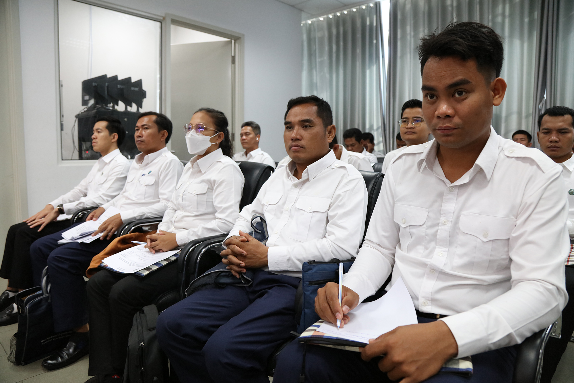 រូបភាពសកម្មភាព ឯកឧត្តម ម៉ុក ដារ៉ា អគ្គលេខាធិការរង គ.ជ.ប អញ្ជើញជាអធិបតី ក្នុងពិធីបើកវគ្គបណ្តុះបណ្តាល ស្តីពីការប្រើប្រាស់កម្មវិធីគ្រប់គ្រងស្ថិតិប្រជាពលរដ្ឋ គ្រប់គ្រងទីតាំងការិយាល័យបោះឆ្នោត និងការិយាល័យចុះឈ្មោះបោះឆ្នោត សម្រាប់បម្រើឱ្យការពិនិត្យបញ្ជីឈ្មោះ និងការចុះឈ្មោះបោះឆ្នោតឆ្នាំ២០២៤ ជូនដល់ប្រធាន សមាជិកផ្នែកប្រតិបត្តិការ និងបច្ចេកទេស នៃលេខាធិការដ្ឋានរាជធានី ខេត្តរៀបចំការបោះឆ្នោត នៅទីស្ដីការ គ.ជ.ប នាព្រឹកថ្ងៃទី៣០ ខែមេសា ឆ្នាំ២០២៤