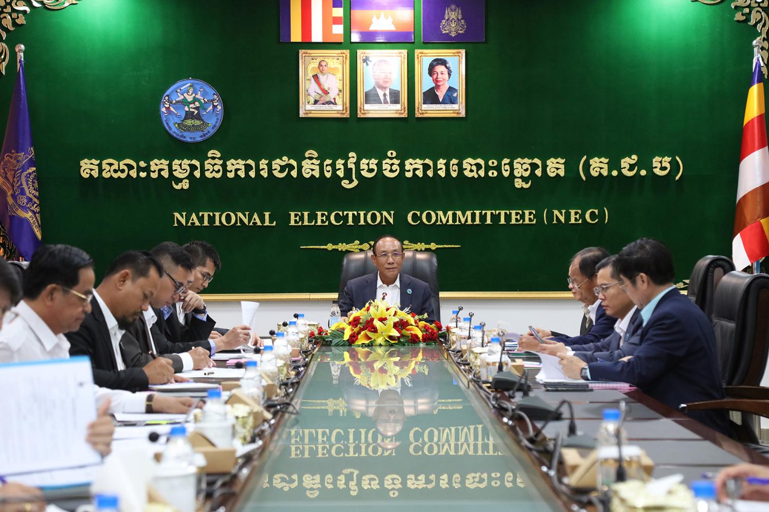 រូបភាពសកម្មភាព ឯកឧត្ដម ប្រាជ្ញ ចន្ទ ប្រធាន គ.ជ.ប និងជាប្រធានក្រុមប្រឹក្សាជំនុំជម្រះ បានដឹកនាំបើកសវនាការសង្ខេបជំនុំជម្រះលើបណ្ដឹង/សំណុំរឿងលេខ ០០១ ចុះថ្ងៃទី២៩ ខែមេសា ឆ្នាំ២០២៤ ប្ដឹងជំទាស់នឹងសេចក្ដីសម្រេចលេខ ០០១ គ.ប/ស្វ.រ ចុះថ្ងៃទី២៤ ខែមេសា ឆ្នាំ២០២៤ របស់ក្រុមប្រឹក្សាជំនុំជម្រះនៃគណៈកម្មការរៀបចំការបោះឆ្នោតខេត្តស្វាយរៀង ពាក់ព័ន្ធនឹងបញ្ជីបោះឆ្នោតដំបូង សម្រាប់ការបោះឆ្នោតជ្រើសរើសក្រុមប្រឹក្សារាជធានី ក្រុមប្រឹក្សាខេត្ត ក្រុមប្រឹក្សាក្រុង ក្រុមប្រឹក្សាស្រុក ក្រុមប្រឹក្សាខណ្ឌ អាណត្តិទី៤ ឆ្នាំ២០២៤ នៅទីស្ដីការ គ.ជ.ប នាព្រឹកថ្ងៃទី៣ ខែឧសភា ឆ្នាំ២០២៤