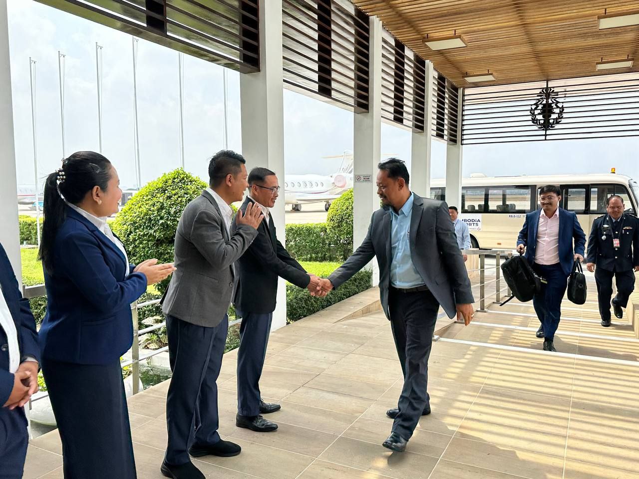 រូបភាពសកម្មភាព៖ នាព្រឹកថ្ងៃទី១០ ខែឧសភា ឆ្នាំ២០២៤ នៅអាកាសយានដ្ឋានអន្តរជាតិភ្នំពេញ (ច្រក VIP) មន្ត្រីជាន់ខ្ពស់ គ.ជ.ប ស្វាគមន៍ដំណើរមាតុភូមិនិវត្តន៍របស់គណៈប្រតិភូ គ.ជ.ប ដឹកនាំដោយ ឯកឧត្ដម ហ៊ែល សារ៉ាត់ សមាជិក គ.ជ.ប ដែលបានអញ្ជើញចូលរួមកម្មវិធីសង្កេតការណ៍បោះឆ្នោតអន្តរជាតិ (IEVP) សម្រាប់ការបោះឆ្នោតជ្រើសរើសសមាជិករដ្ឋសភា (Lok Sabha) និងសភាក្នុងរដ្ឋមួយចំនួន ចាប់ពីថ្ងៃទី៤ ដល់ថ្ងៃទី៩ ខែឧសភា ឆ្នាំ២០២៤ នៅប្រទេសឥណ្ឌា