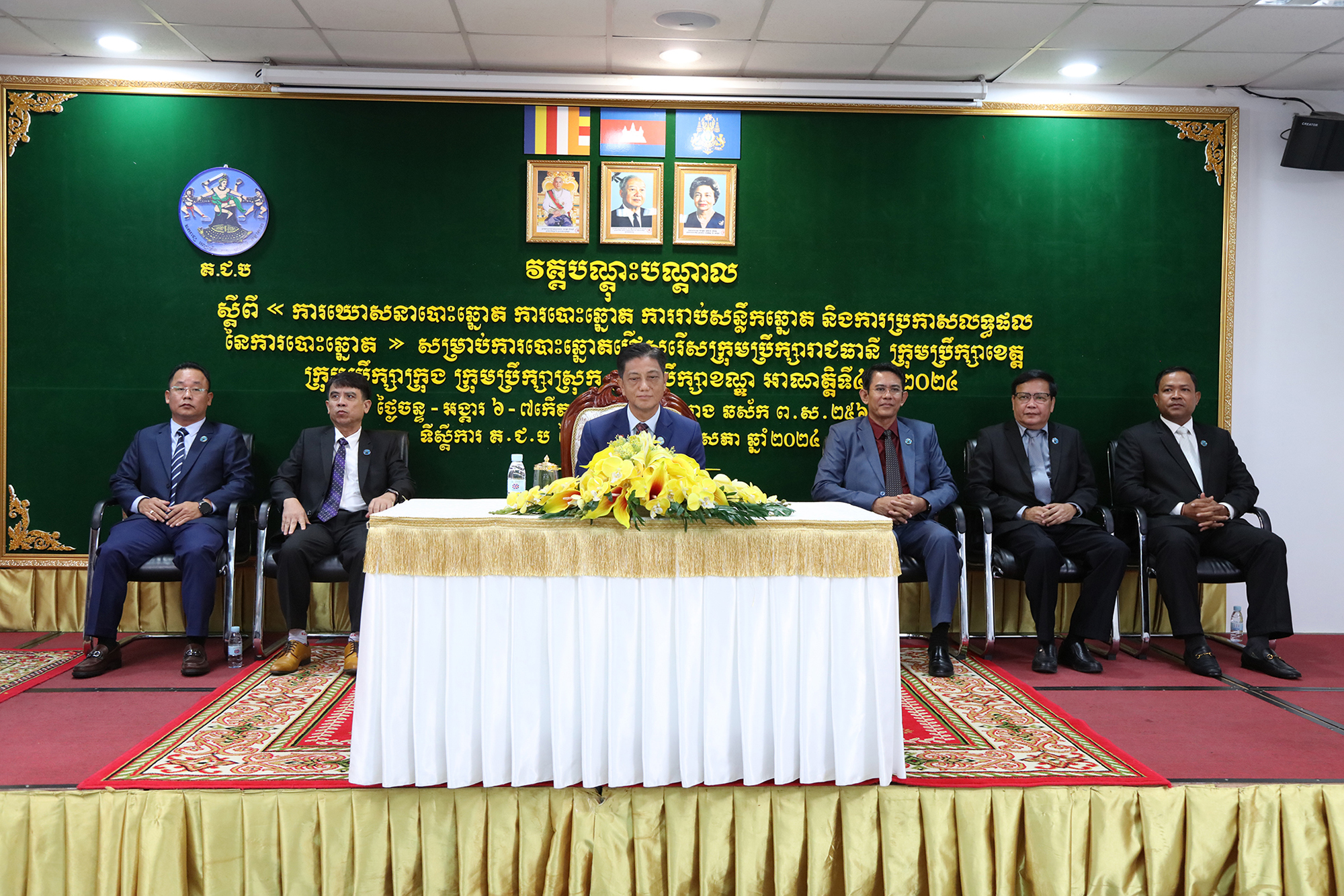 រូបភាពសកម្មភាព ឯកឧត្តម ម៉ុក ដារ៉ា អគ្គលេខាធិការរង គ.ជ.ប បានអញ្ជើញជាអធិបតីក្នុងពិធីបើកវគ្គបណ្តុះបណ្តាល ស្តីពី «ការឃោសនាបោះឆ្នោត ការបោះឆ្នោត ការរាប់សន្លឹកឆ្នោត និងការប្រកាសលទ្ធផលនៃការបោះឆ្នោត» សម្រាប់ការបោះឆ្នោតជ្រើសរើសក្រុមប្រឹក្សារាជធានី ក្រុមប្រឹក្សាខេត្ត ក្រុមប្រឹក្សាក្រុង ក្រុមប្រឹក្សាស្រុក ក្រុមប្រឹក្សាខណ្ឌ អាណត្តិទី៤ ឆ្នាំ២០២៤ ជូនដល់ប្រធាន គធ.ខប សមាជិក គធ.ខប និងភាគីពាក់ព័ន្ធ នៅទីស្ដីការ គ.ជ.ប នាព្រឹកថ្ងៃទី១៣ ខែឧសភា ឆ្នាំ២០២៤