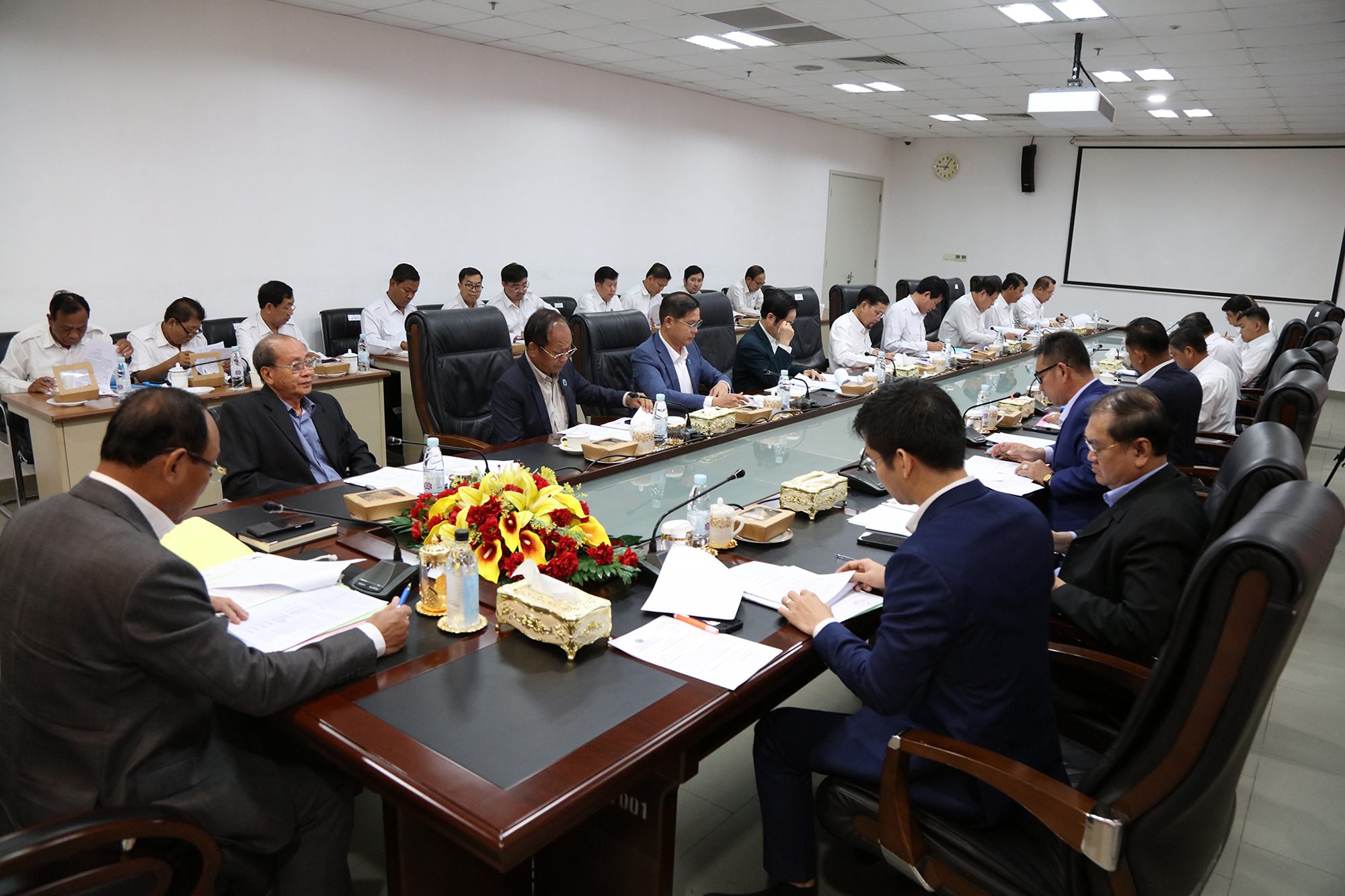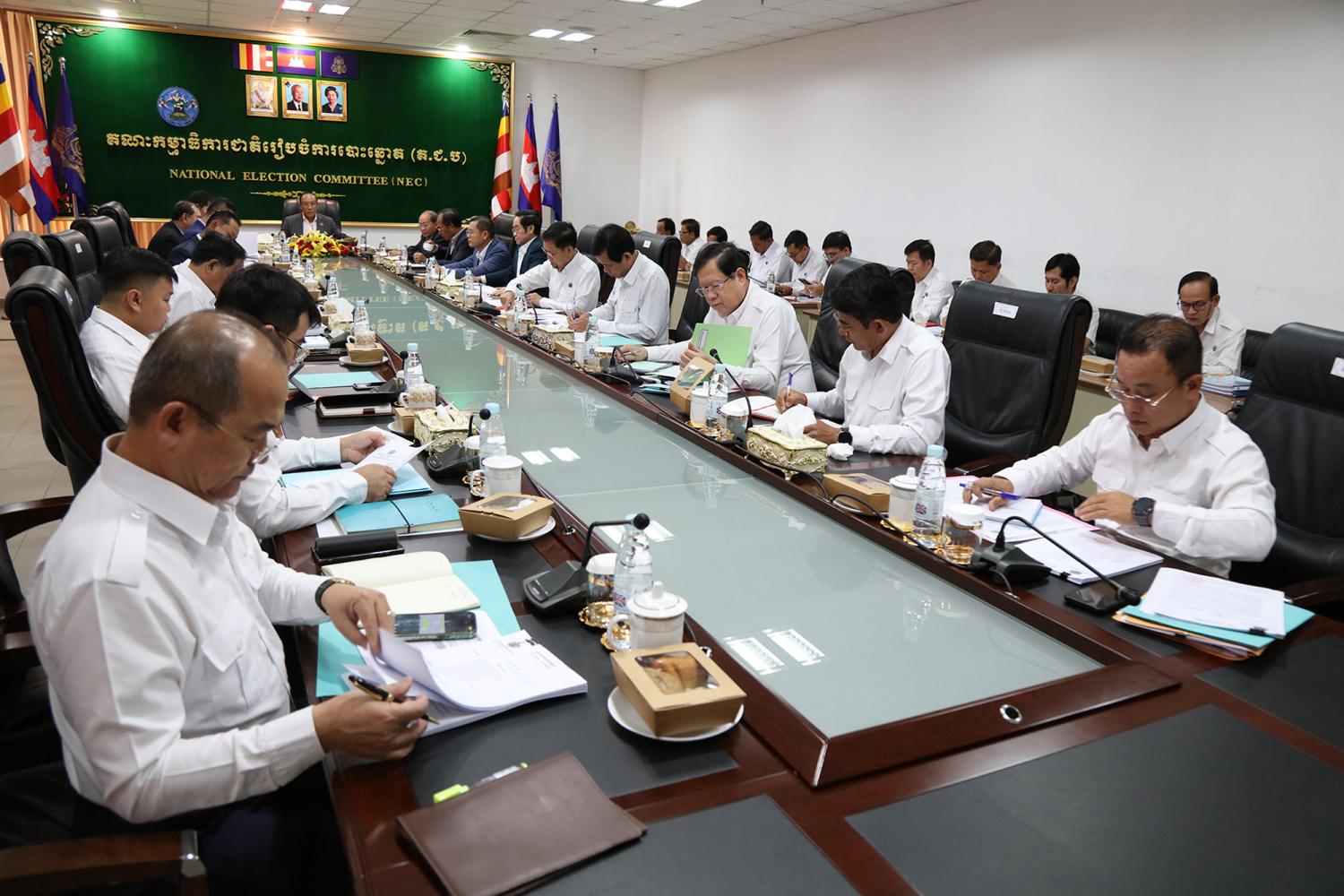 រូបភាពសកម្មភាព ឯកឧត្ដម ប្រាជ្ញ ចន្ទ ប្រធានគណៈកម្មាធិការជាតិរៀបចំការបោះឆ្នោត (គ.ជ.ប) បានដឹកនាំកិច្ចប្រជុំ គ.ជ.ប នាព្រឹកថ្ងៃទី២៣ ខែឧសភា ឆ្នាំ២០២៤ នៅទីស្ដីការ គ.ជ.ប លើរបៀបវារៈ៖