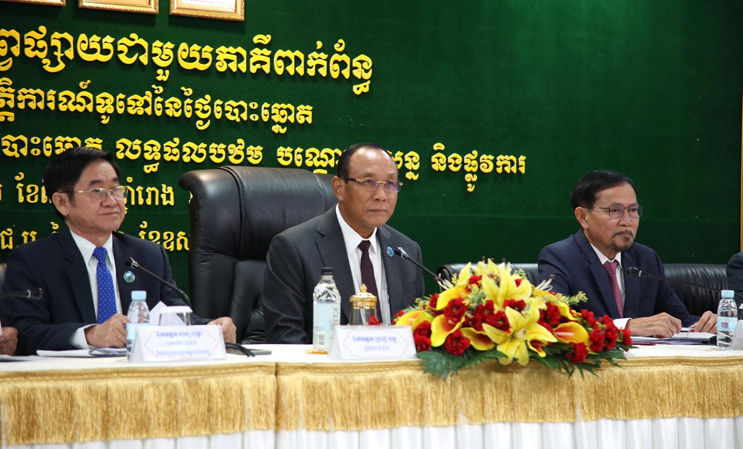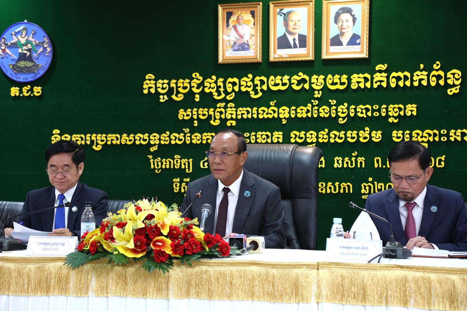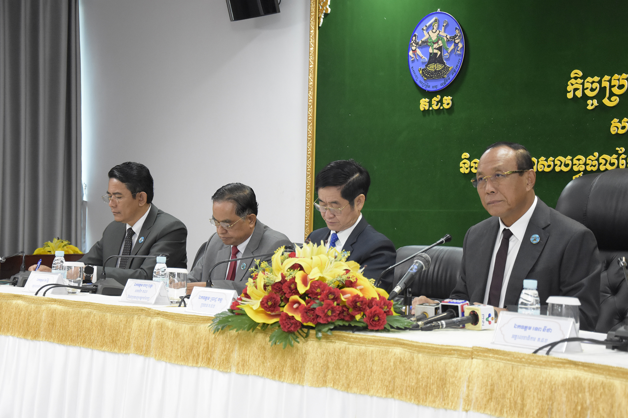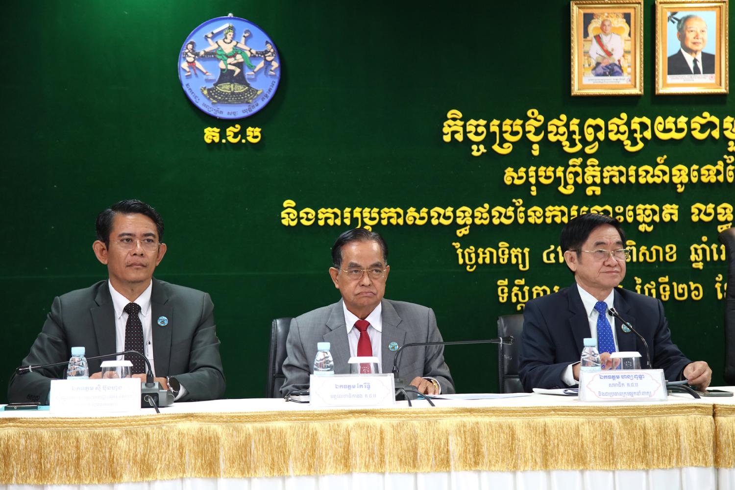 រូបភាពសកម្មភាព ឯកឧត្តម ប្រាជ្ញ ចន្ទ ប្រធានគណៈកម្មាធិការជាតិរៀបចំការបោះឆ្នោត (គ.ជ.ប) បានដឹកនាំកិច្ចប្រជុំផ្សព្វផ្សាយជាមួយភាគីពាក់ព័ន្ធ ស្ដីពីសរុបព្រឹត្តិការណ៍ទូទៅនៃថ្ងៃបោះឆ្នោត និងការប្រកាសលទ្ធផលនៃការបោះឆ្នោត លទ្ធផលបឋម បណ្តោះអាសន្ន និងផ្លូវការ សម្រាប់ការបោះឆ្នោតជ្រើសរើសក្រុមប្រឹក្សារាជធានី ក្រុមប្រឹក្សាខេត្ត ក្រុមប្រឹក្សាក្រុង ក្រុមប្រឹក្សាស្រុក ក្រុមប្រឹក្សាខណ្ឌ អាណត្តិទី៤ ឆ្នាំ២០២៤
