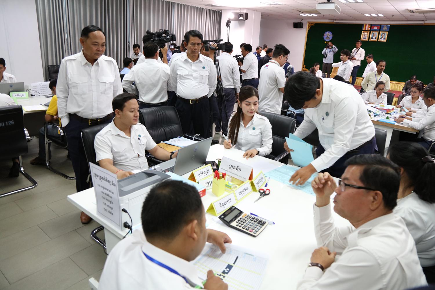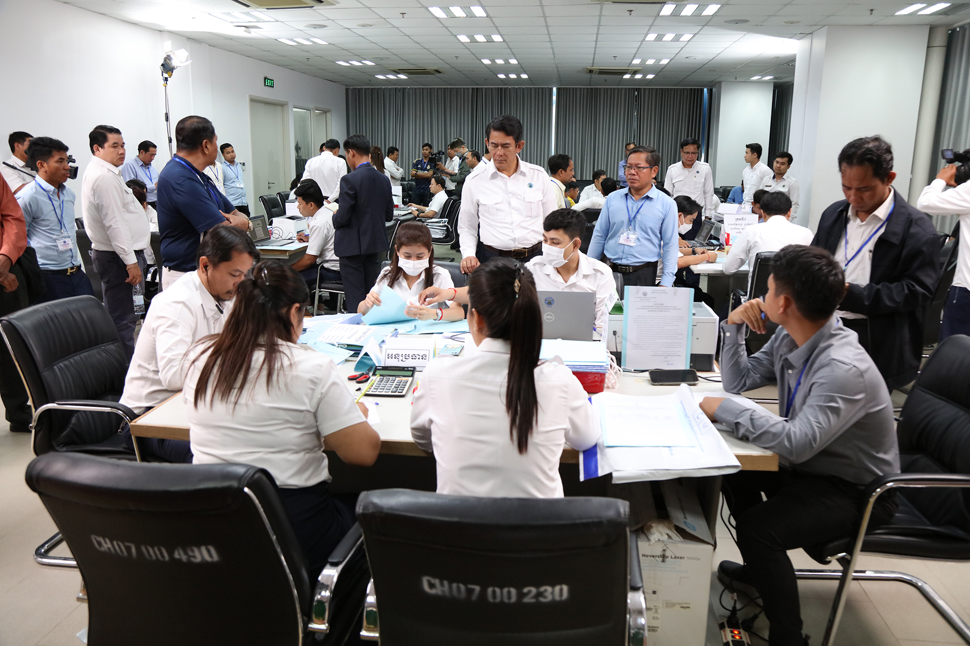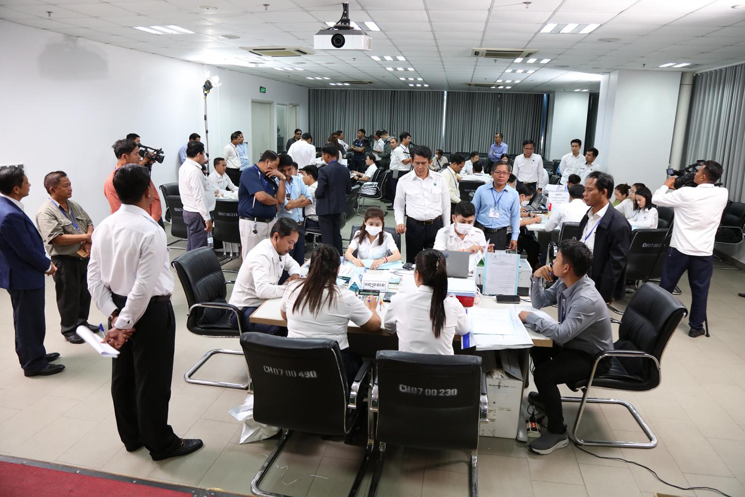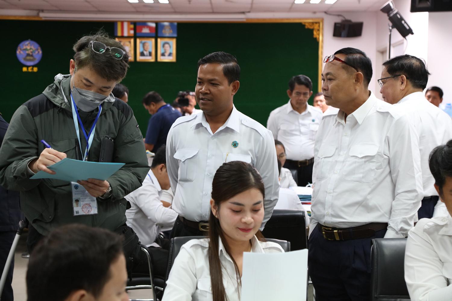 រូបភាពសកម្មភាព នៃការត្រួតពិនិត្យ និងផ្ទៀងផ្ទាត់ឡើងវិញ ដើម្បីបញ្ជាក់ពីភាពត្រឹមត្រូវនូវលទ្ធផលបណ្ដោះអាសន្ននៃការបោះឆ្នោតជ្រើសរើសក្រុមប្រឹក្សារាជធានី ក្រុមប្រឹក្សាខេត្ត ក្រុមប្រឹក្សាក្រុង ក្រុមប្រឹក្សាស្រុក ក្រុមប្រឹក្សាខណ្ឌ អាណត្តិទី៤ ឆ្នាំ២០២៤ នៅទីស្ដីការ គ.ជ.ប នារសៀលថ្ងៃទី៣០ ខែឧសភា ឆ្នាំ២០២៤