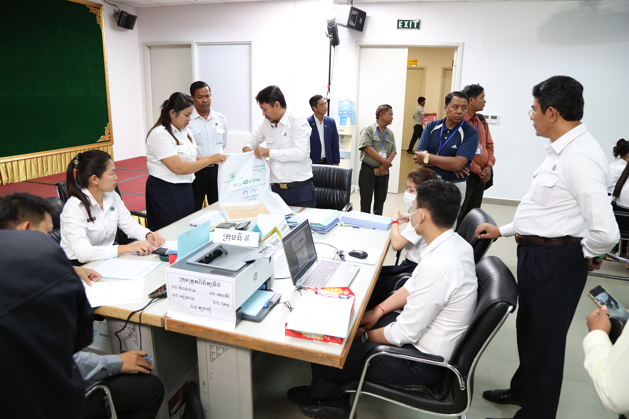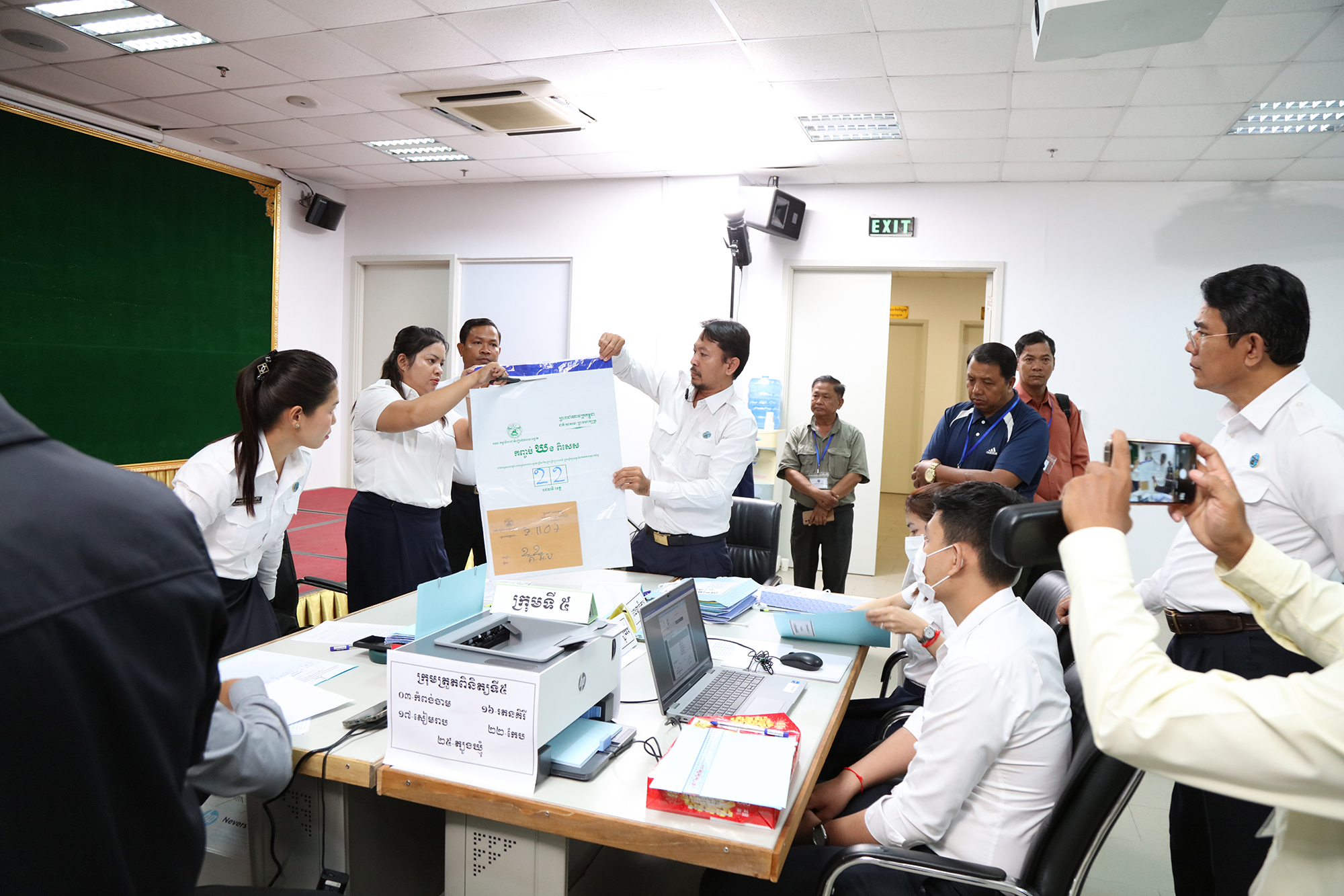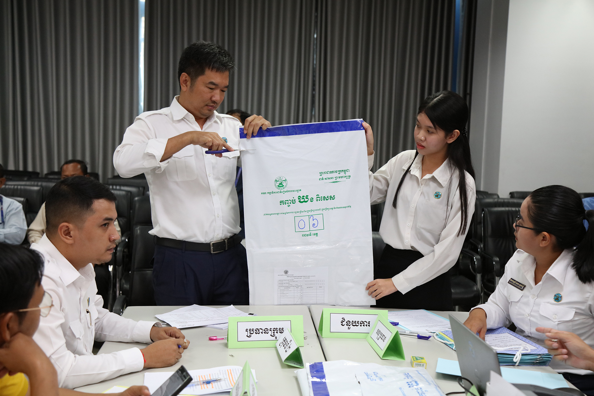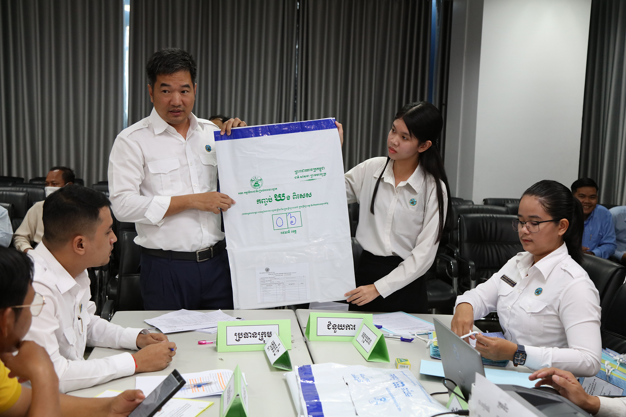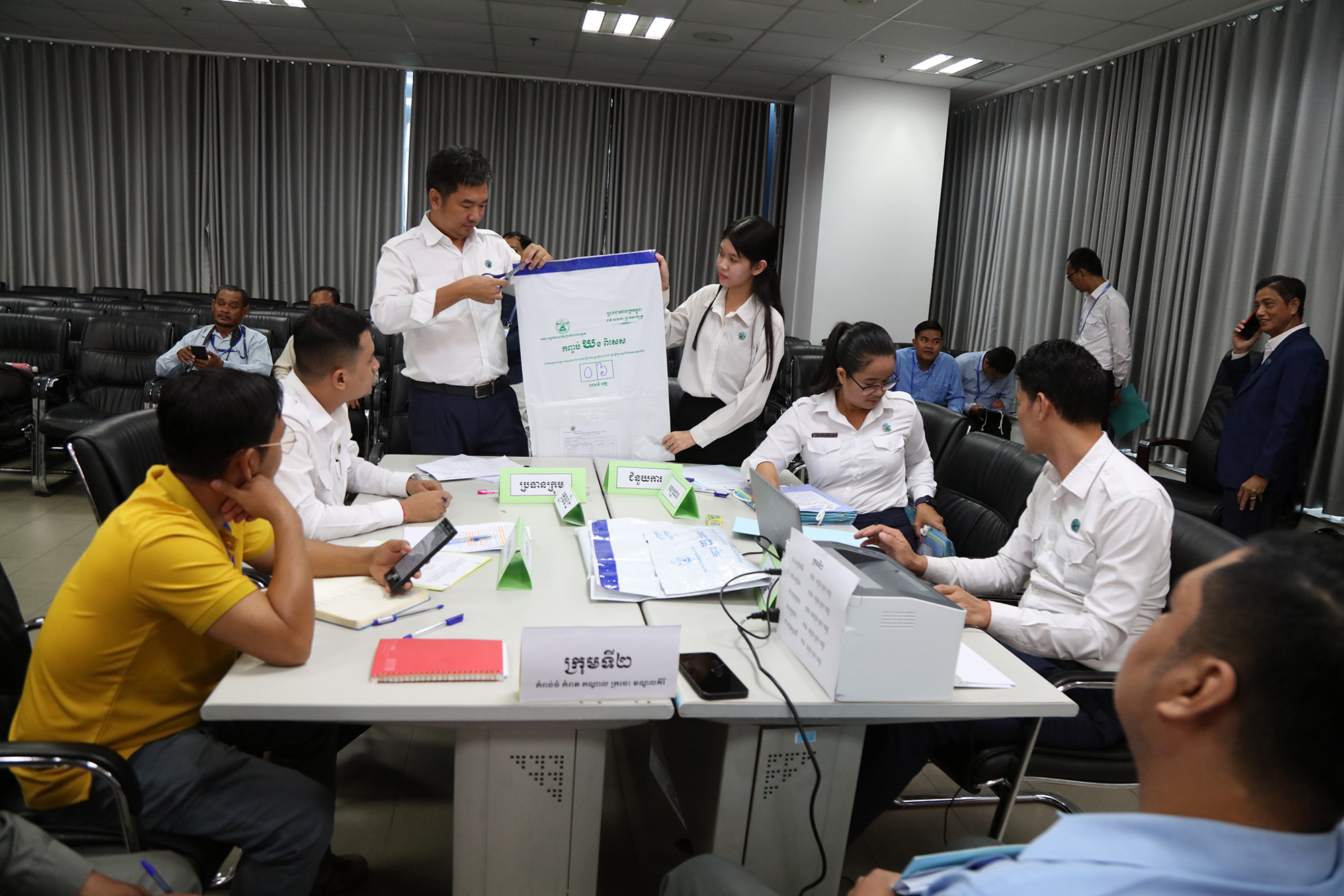រូបភាពសកម្មភាព នៃការត្រួតពិនិត្យ និងផ្ទៀងផ្ទាត់ឡើងវិញ ដើម្បីបញ្ជាក់ពីភាពត្រឹមត្រូវនូវលទ្ធផលបណ្ដោះអាសន្ននៃការបោះឆ្នោតជ្រើសរើសក្រុមប្រឹក្សារាជធានី ក្រុមប្រឹក្សាខេត្ត ក្រុមប្រឹក្សាក្រុង ក្រុមប្រឹក្សាស្រុក ក្រុមប្រឹក្សាខណ្ឌ អាណត្តិទី៤ ឆ្នាំ២០២៤ នៅទីស្ដីការ គ.ជ.ប នារសៀលថ្ងៃទី៣០ ខែឧសភា ឆ្នាំ២០២៤