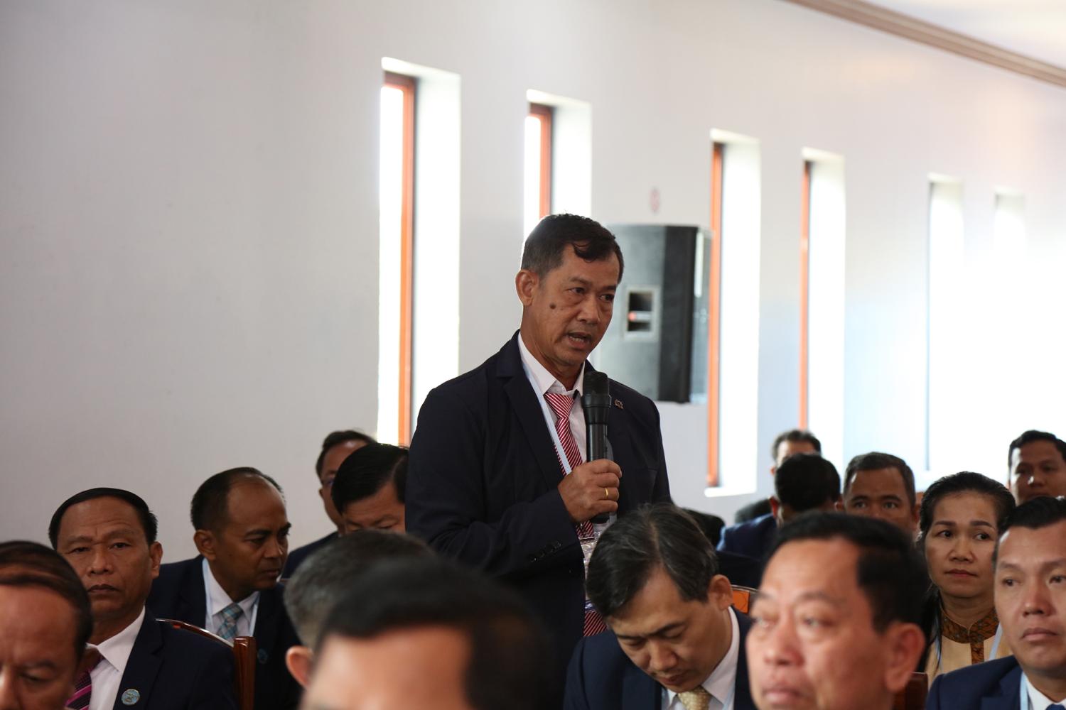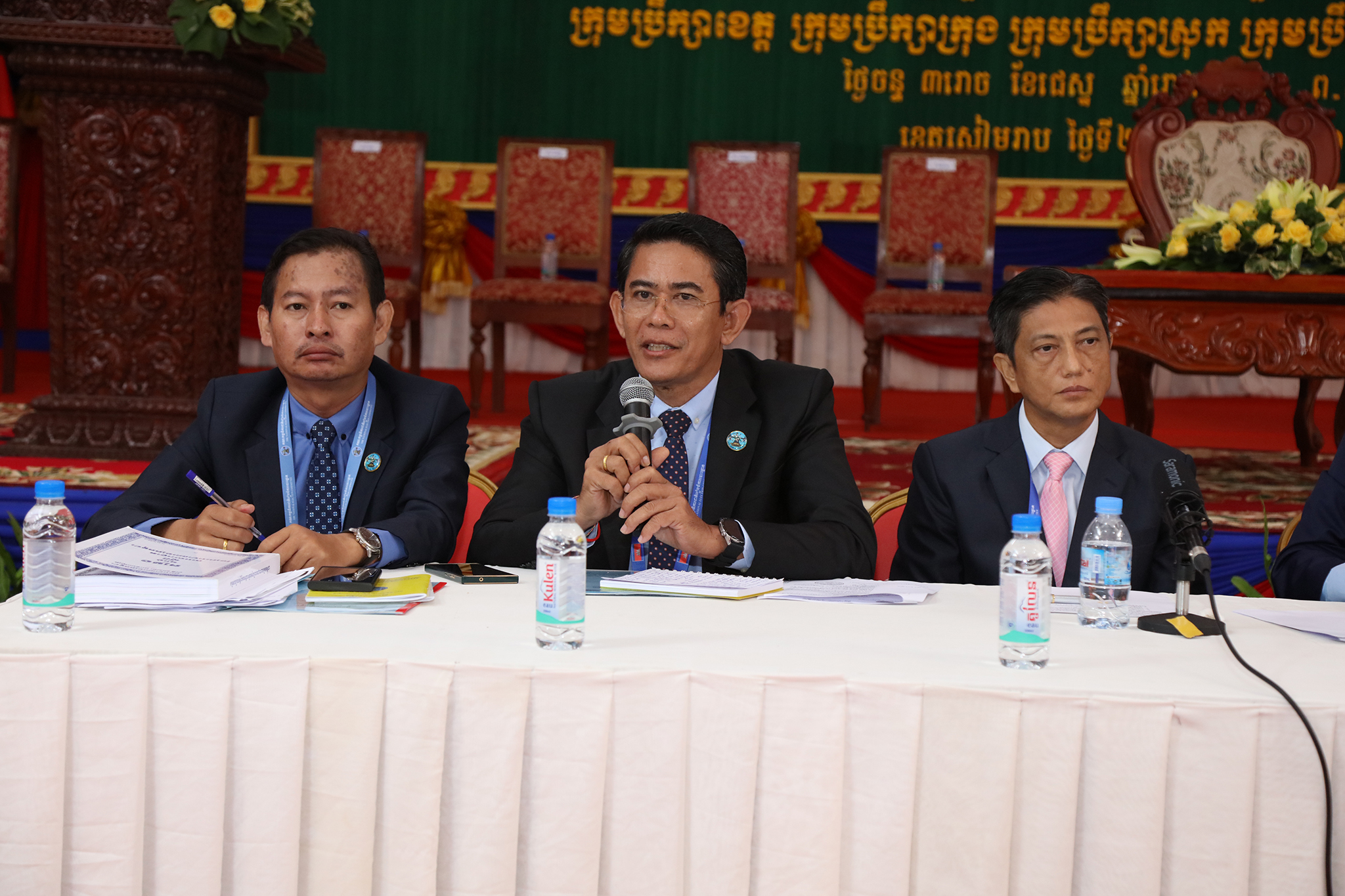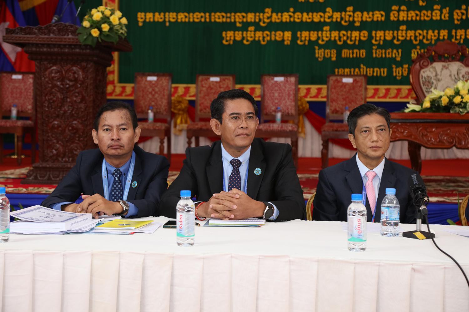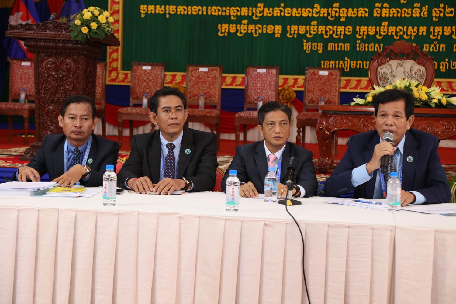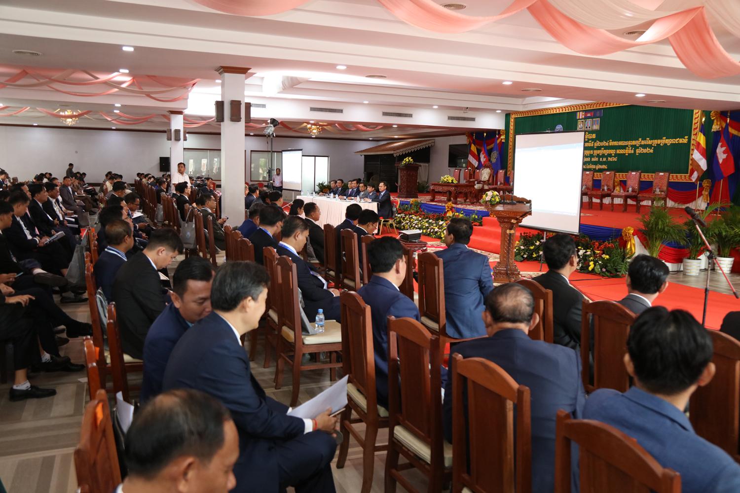 រូបភាពសកម្មភាពកិច្ចពិភាក្សានៃអង្គសន្និបាតបូកសរុបការងាររៀបចំការបោះឆ្នោតជ្រើសតាំងសមាជិកព្រឹទ្ធសភា នីតិកាលទី៥ ឆ្នាំ២០២៤ និងការបោះឆ្នោតជ្រើសរើសក្រុមប្រឹក្សារាជធានី ក្រុមប្រឹក្សាខេត្ត ក្រុមប្រឹក្សាក្រុង ក្រុមប្រឹក្សាស្រុក ក្រុមប្រឹក្សាខណ្ឌ អាណត្តិទី៤ ឆ្នាំ២០២៤ នាព្រឹកថ្ងៃទី២៤ ខែមិថុនា ឆ្នាំ២០២៤ នៅភោជនីយដ្ឋានសមភាពថ្មី ដែលស្ថិតនៅសង្កាត់ស្វាយដង្គំ ក្រុងសៀមរាប ខេត្តសៀមរាប