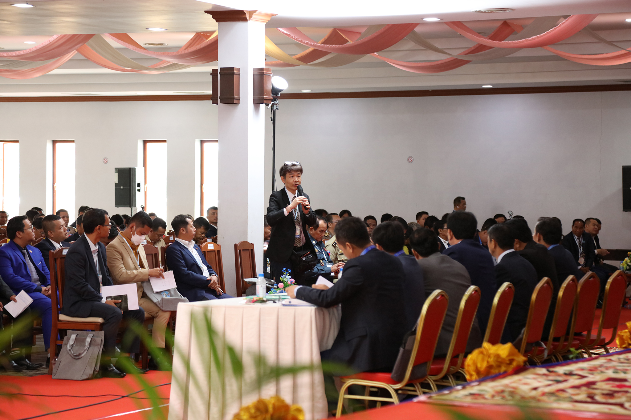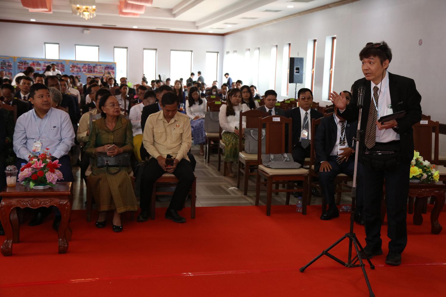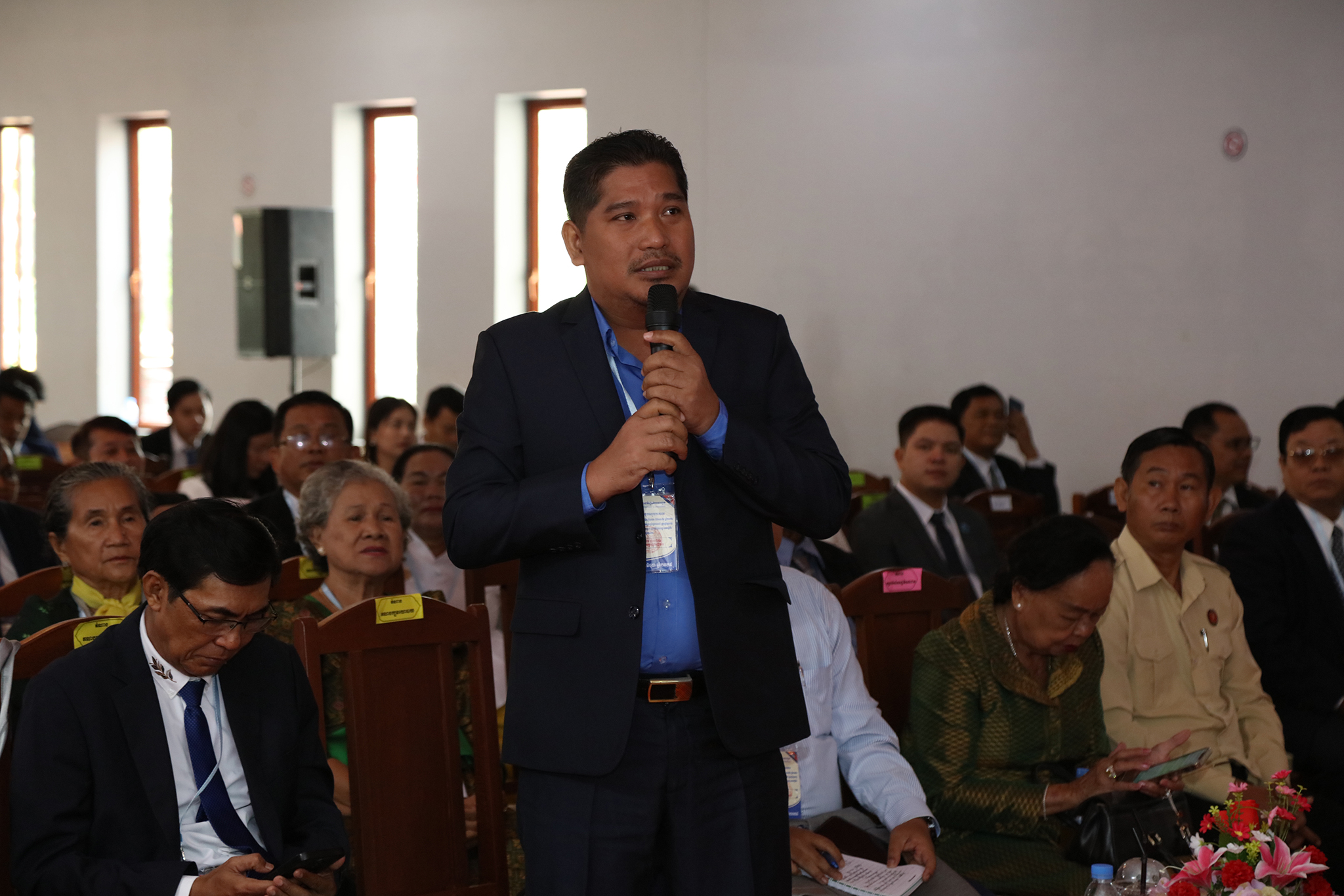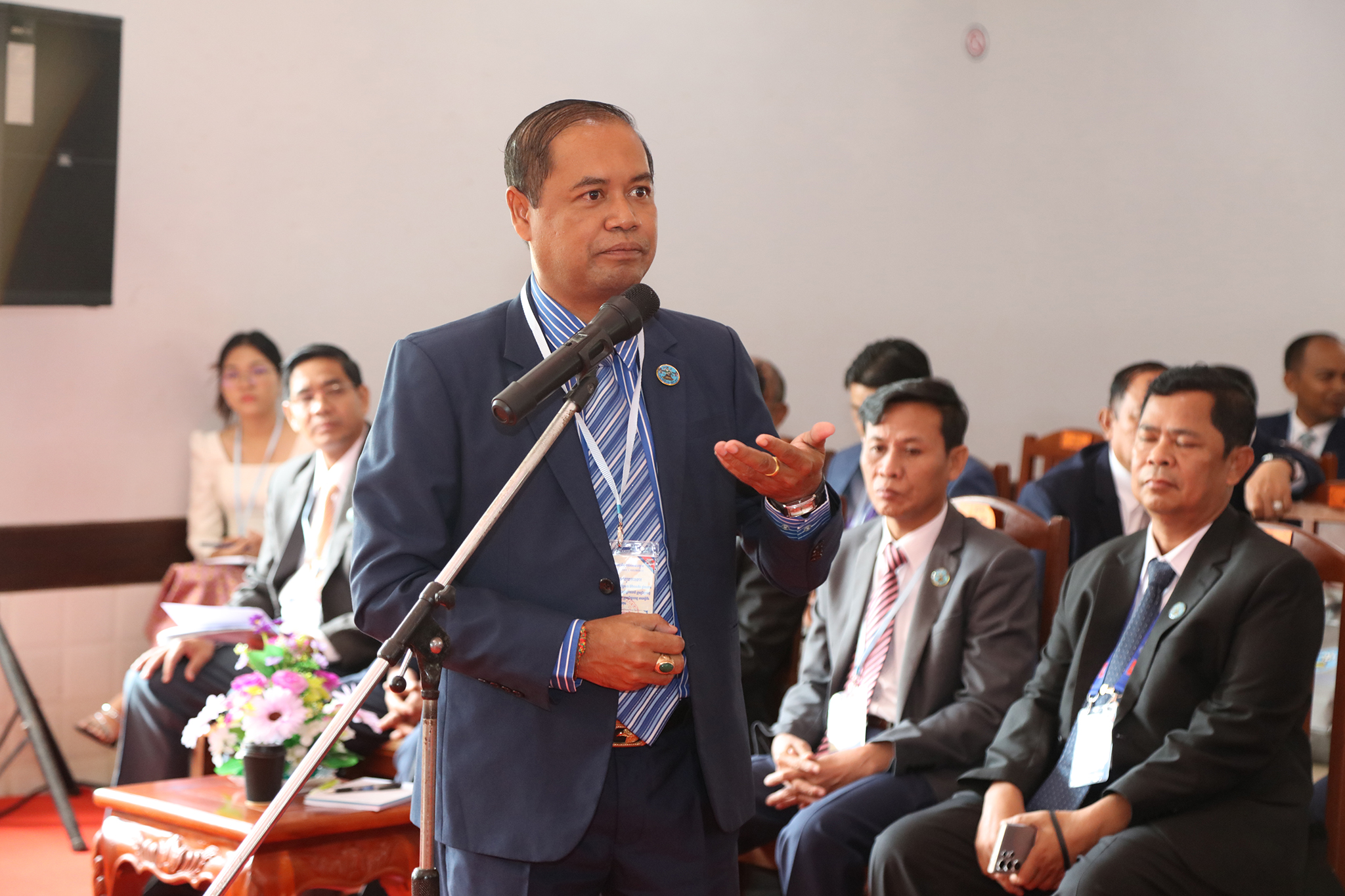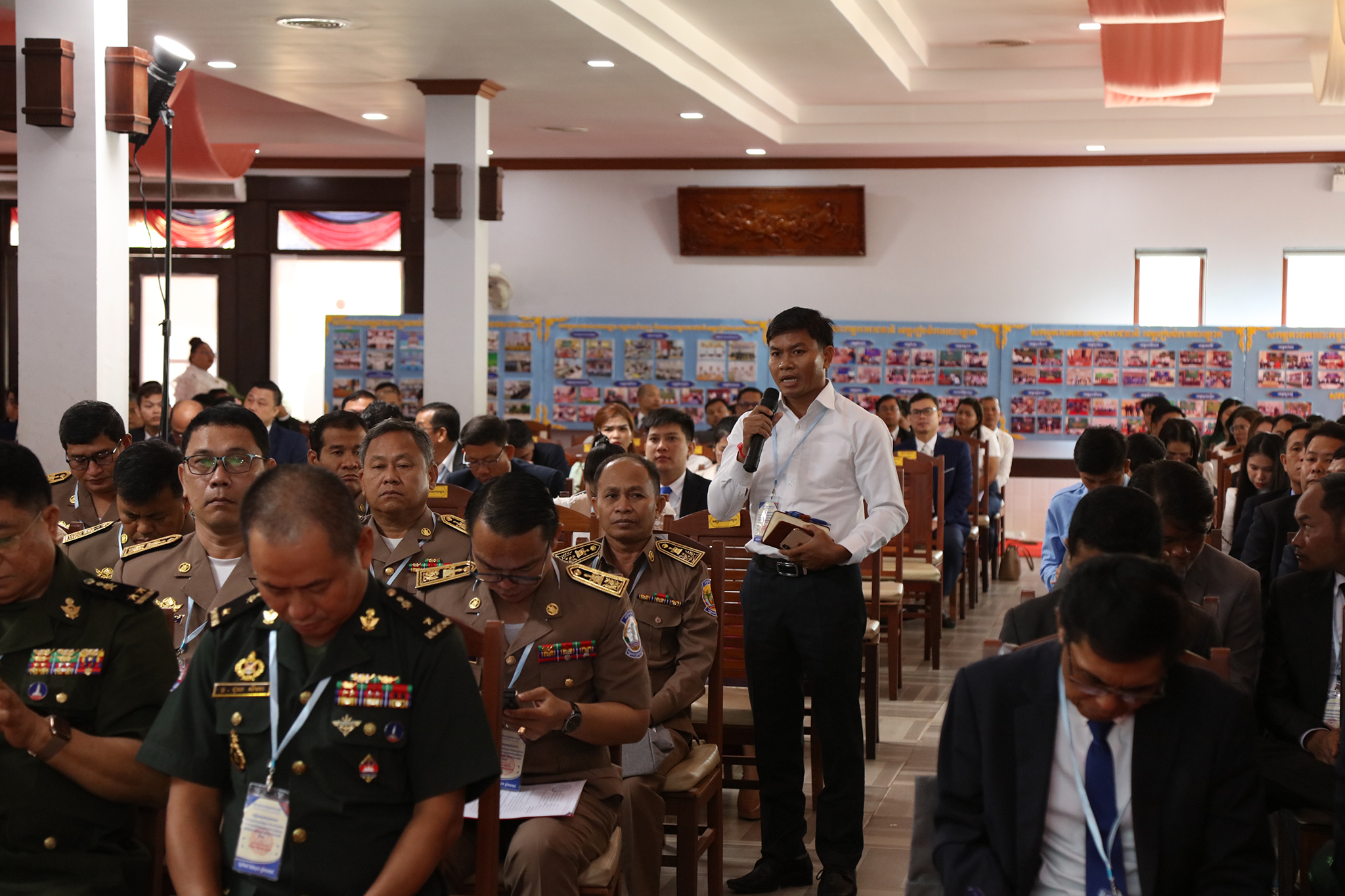 រូបភាពសកម្មភាពកិច្ចពិភាក្សានៃអង្គសន្និបាតបូកសរុបការងាររៀបចំការបោះឆ្នោតជ្រើសតាំងសមាជិកព្រឹទ្ធសភា នីតិកាលទី៥ ឆ្នាំ២០២៤ និងការបោះឆ្នោតជ្រើសរើសក្រុមប្រឹក្សារាជធានី ក្រុមប្រឹក្សាខេត្ត ក្រុមប្រឹក្សាក្រុង ក្រុមប្រឹក្សាស្រុក ក្រុមប្រឹក្សាខណ្ឌ អាណត្តិទី៤ ឆ្នាំ២០២៤ នាព្រឹកថ្ងៃទី២៤ ខែមិថុនា ឆ្នាំ២០២៤ នៅភោជនីយដ្ឋានសមភាពថ្មី ដែលស្ថិតនៅសង្កាត់ស្វាយដង្គំ ក្រុងសៀមរាប ខេត្តសៀមរាប