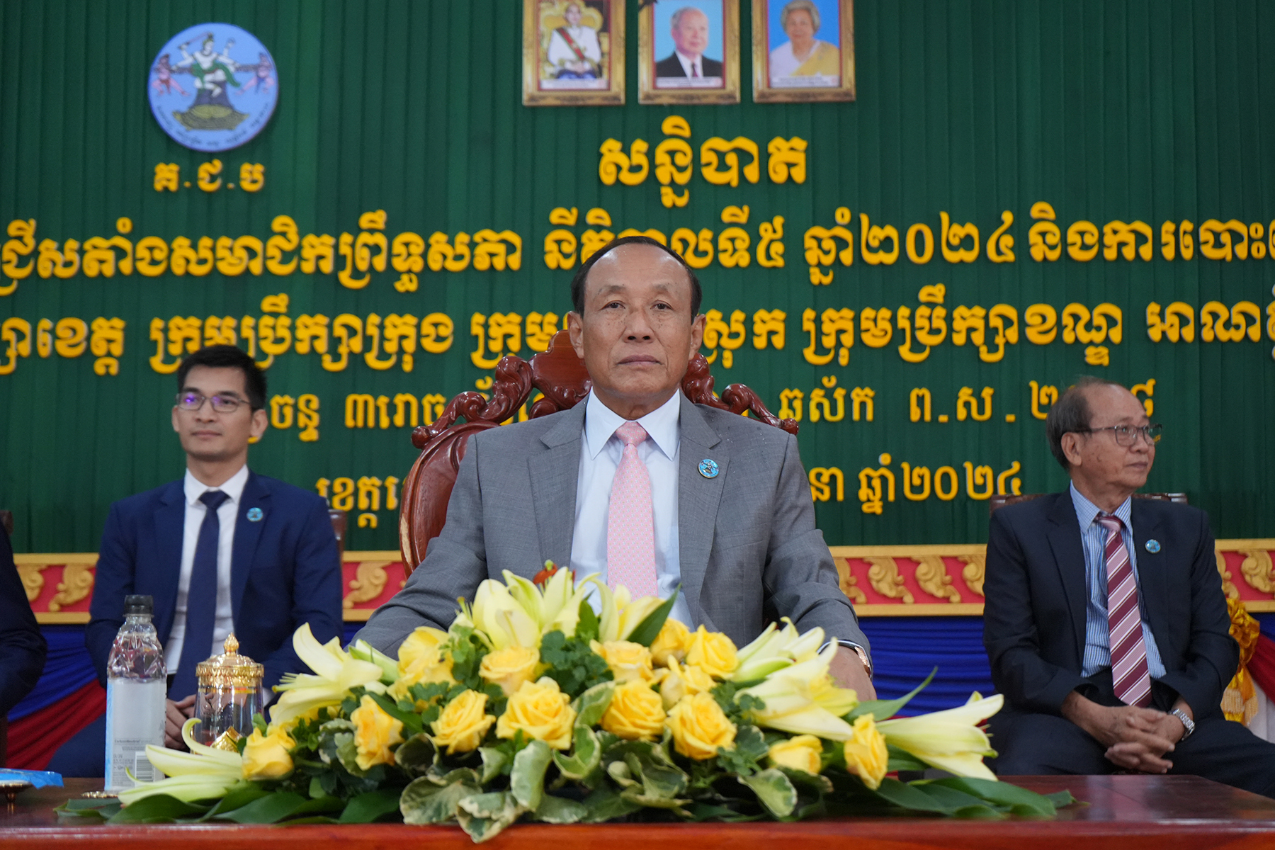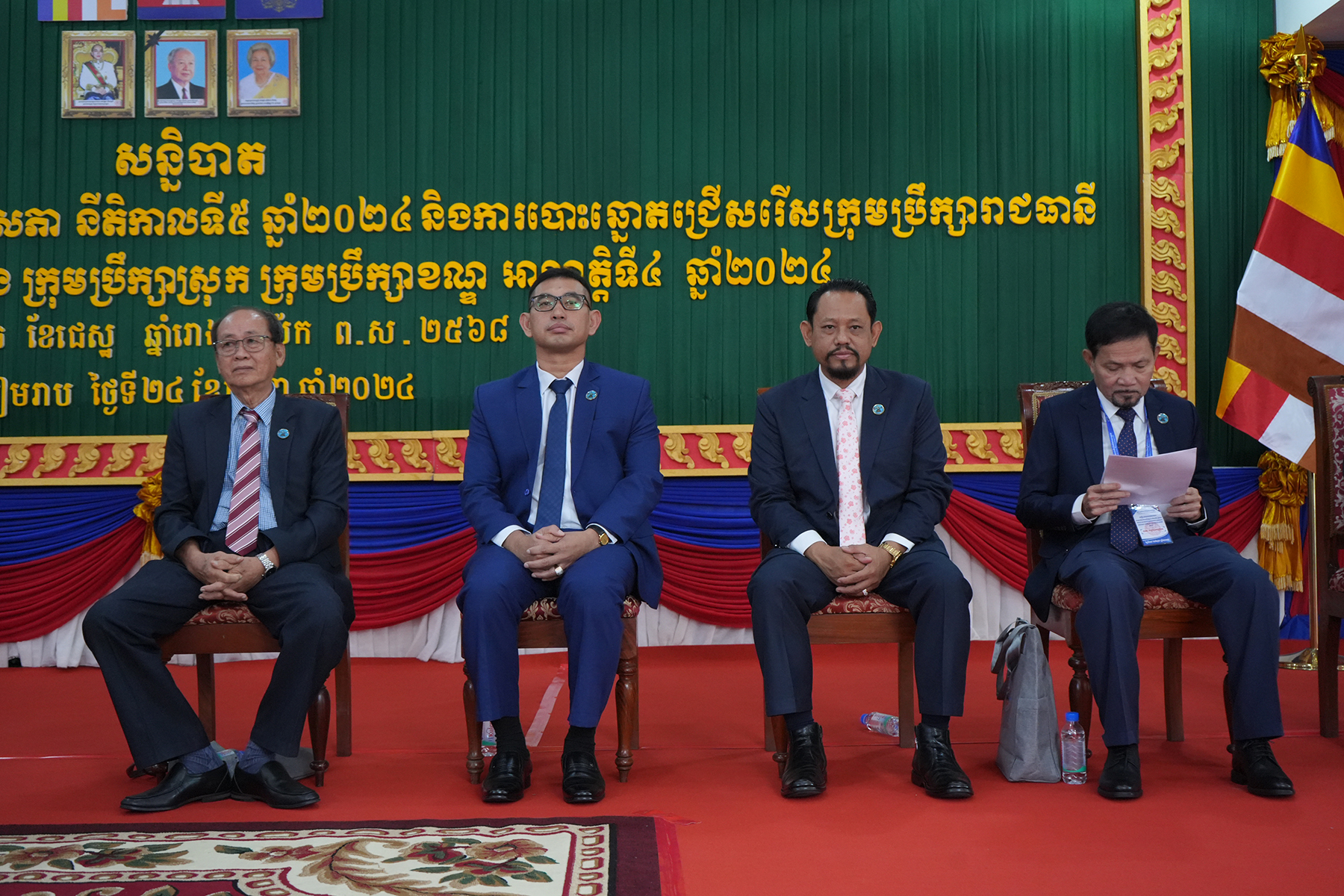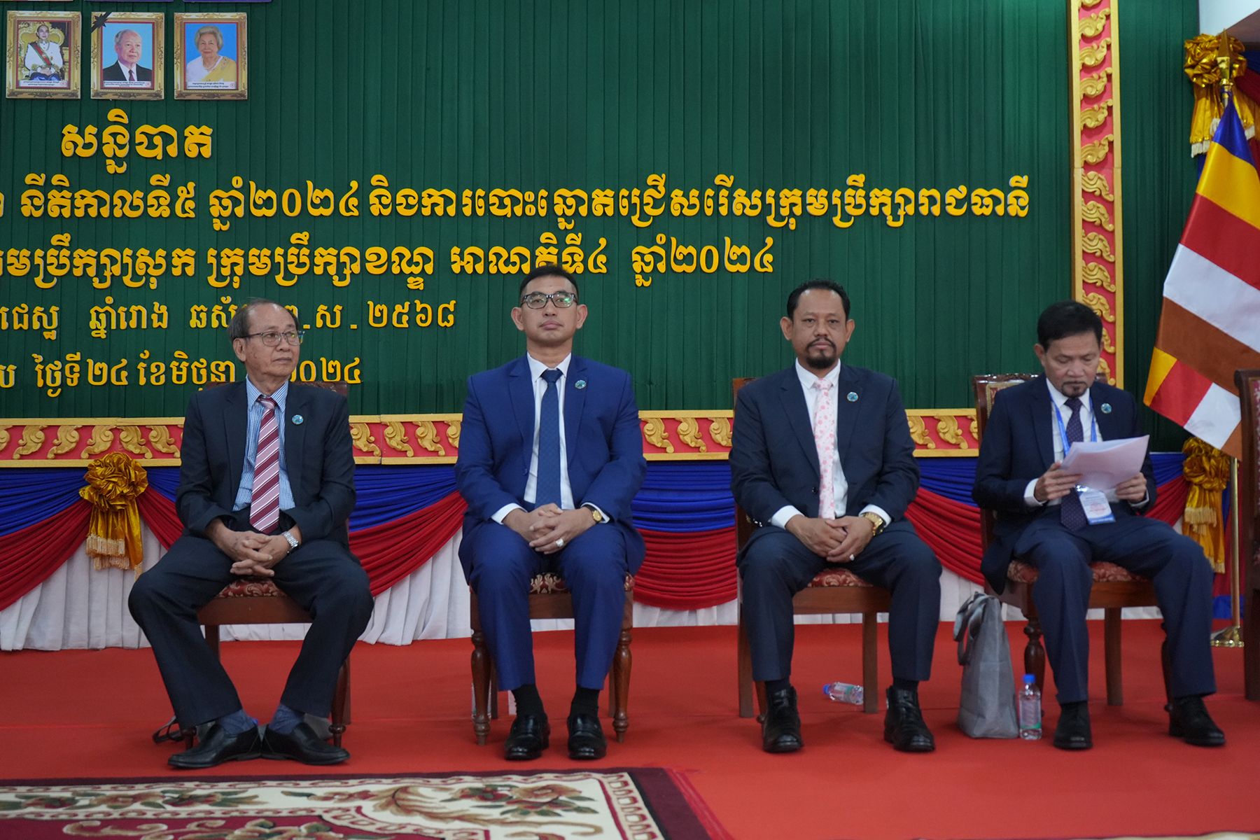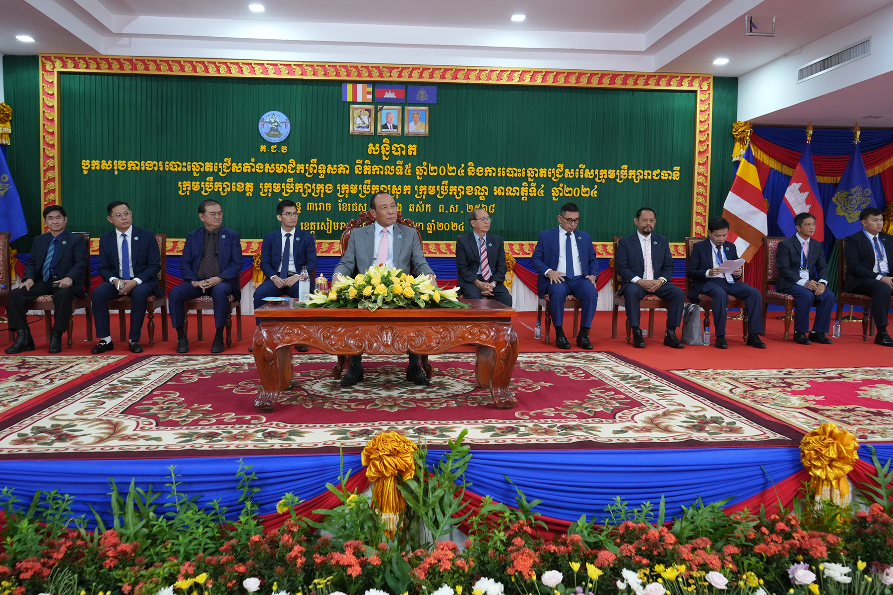 ឯកឧត្ដម ប្រាជ្ញ ចន្ទ ប្រធានគណៈកម្មាធិការជាតិរៀបចំការបោះឆ្នោត (គ.ជ.ប) បានអញ្ជើញមានមតិណែនាំ និងសំណេះសំណាល ក្នុងអង្គសន្និបាតបូកសរុបការងារបោះឆ្នោតជ្រើសតាំងសមាជិកព្រឹទ្ធសភា នីតិកាលទី៥ ឆ្នាំ២០២៤ និងការបោះឆ្នោតជ្រើសរើសក្រុមប្រឹក្សារាជធានី ក្រុមប្រឹក្សាខេត្ត ក្រុមប្រឹក្សាក្រុង ក្រុមប្រឹក្សាស្រុក ក្រុមប្រឹក្សាខណ្ឌ អាណត្តិទី៤ ឆ្នាំ២០២៤ នៅភោជនីយដ្ឋានសមភាពថ្មី ដែលស្ថិតនៅសង្កាត់ស្វាយដង្គំ ក្រុងសៀមរាប ខេត្តសៀមរាប នាព្រឹកថ្ងៃទី២៤ ខែមិថុនា ឆ្នាំ២០២៤។