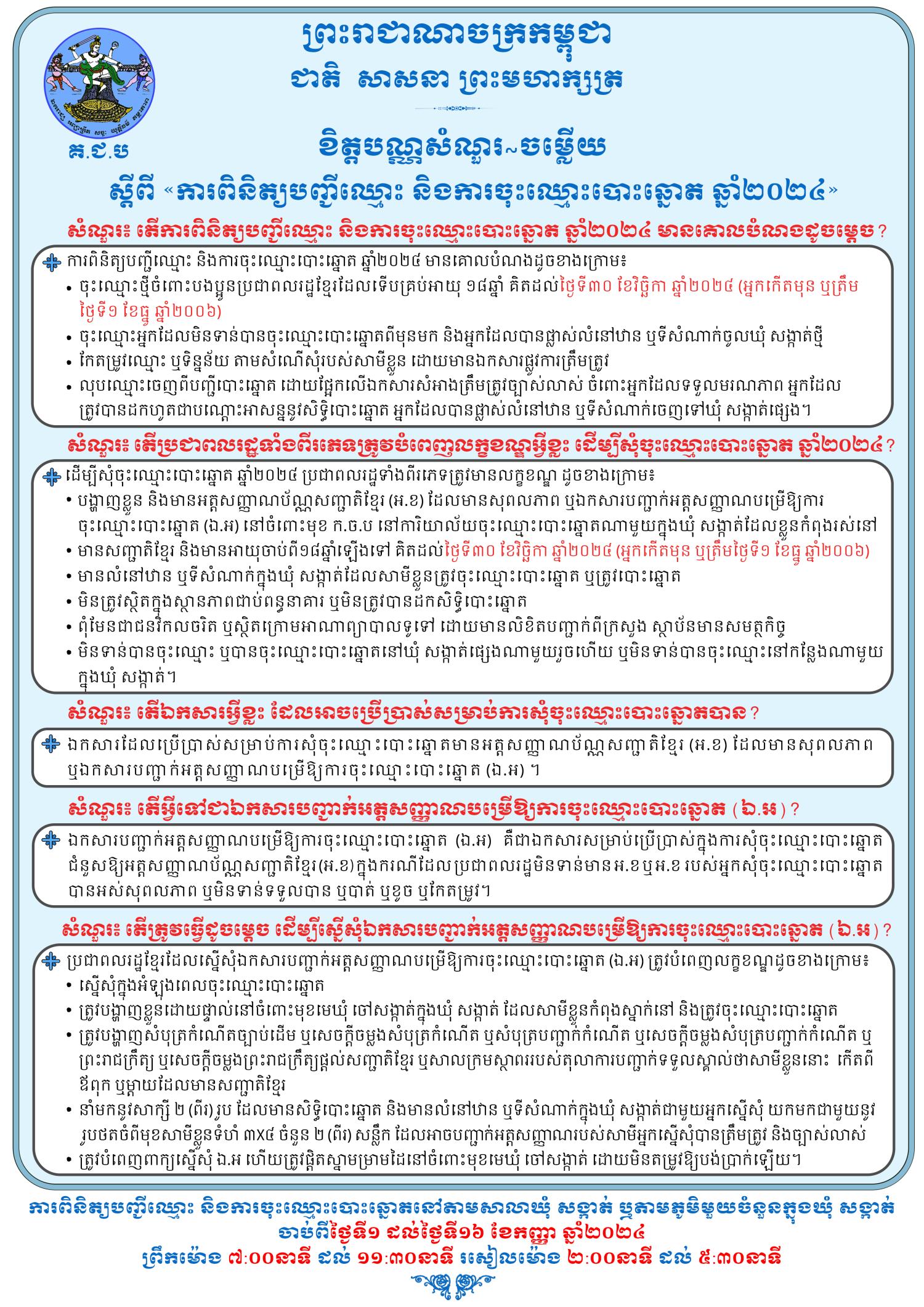 ខិត្តបណ្ណសំណួរ-ចម្លើយ ស្ដីពី “ការពិនិត្យបញ្ជីឈ្មោះ និងការចុះឈ្មោះបោះឆ្នោត ឆ្នាំ២០២៤”