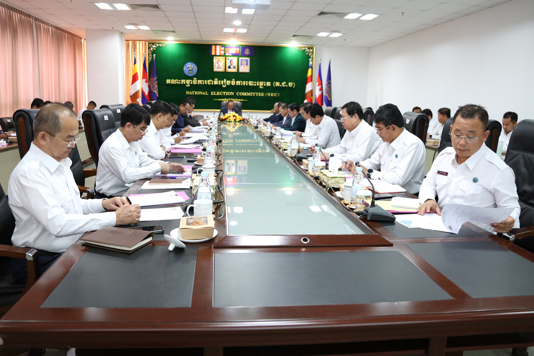 ឯកឧត្ដម ប្រាជ្ញ ចន្ទ ប្រធានគណៈកម្មាធិការជាតិរៀបចំការបោះឆ្នោត (គ.ជ.ប) បានដឹកនាំកិច្ចប្រជុំ គ.ជ.ប នាព្រឹកថ្ងៃទី២១ ខែសីហា ឆ្នាំ២០២៤ នៅទីស្ដីការ គ.ជ.ប លើរបៀបវារៈ៖