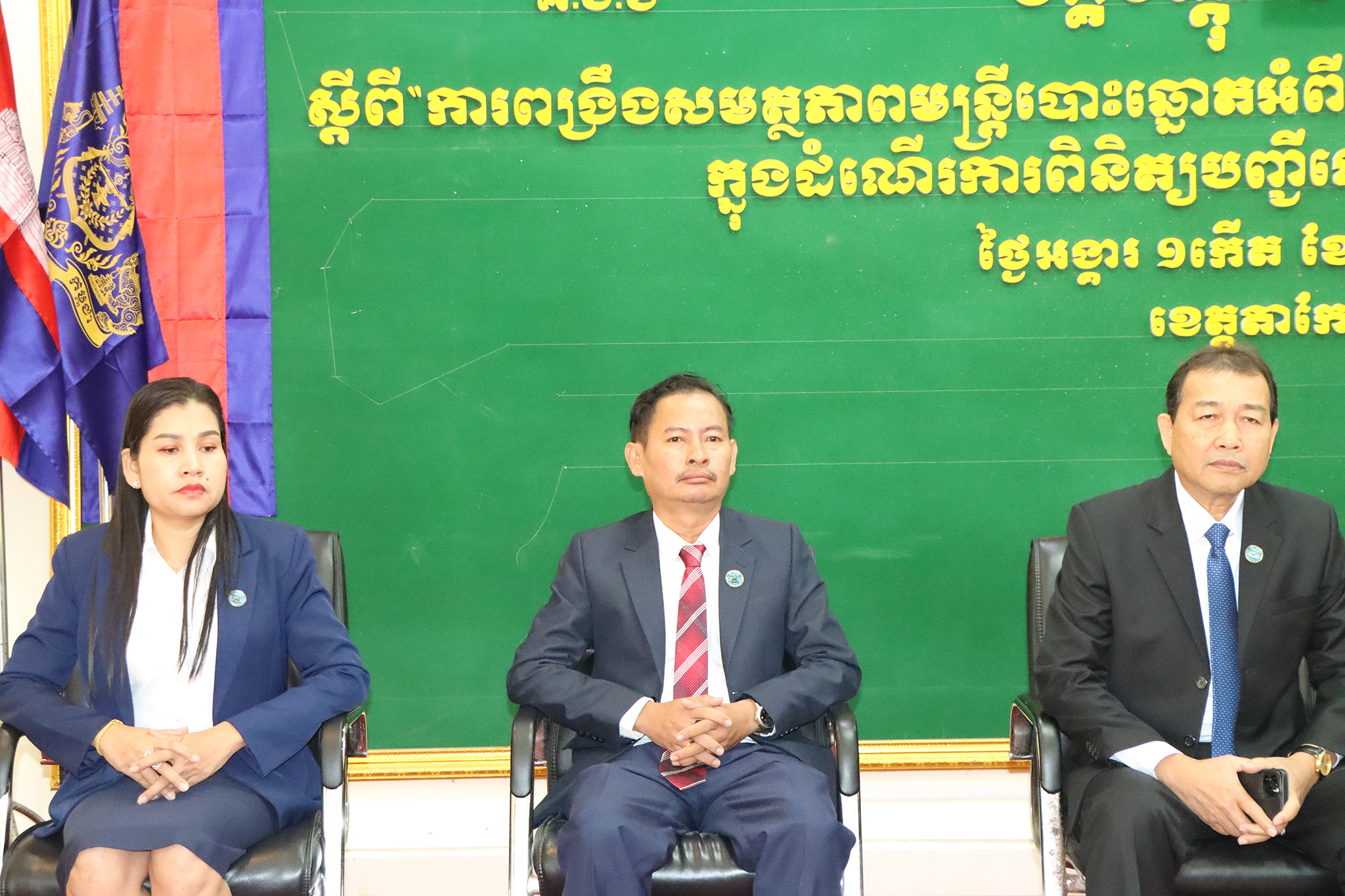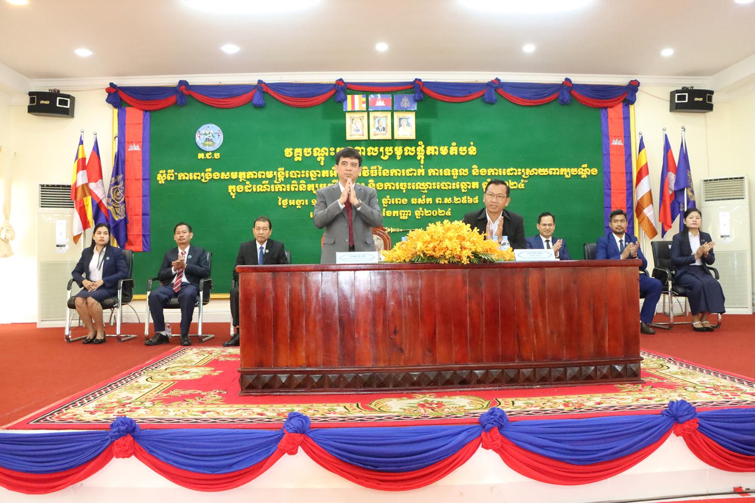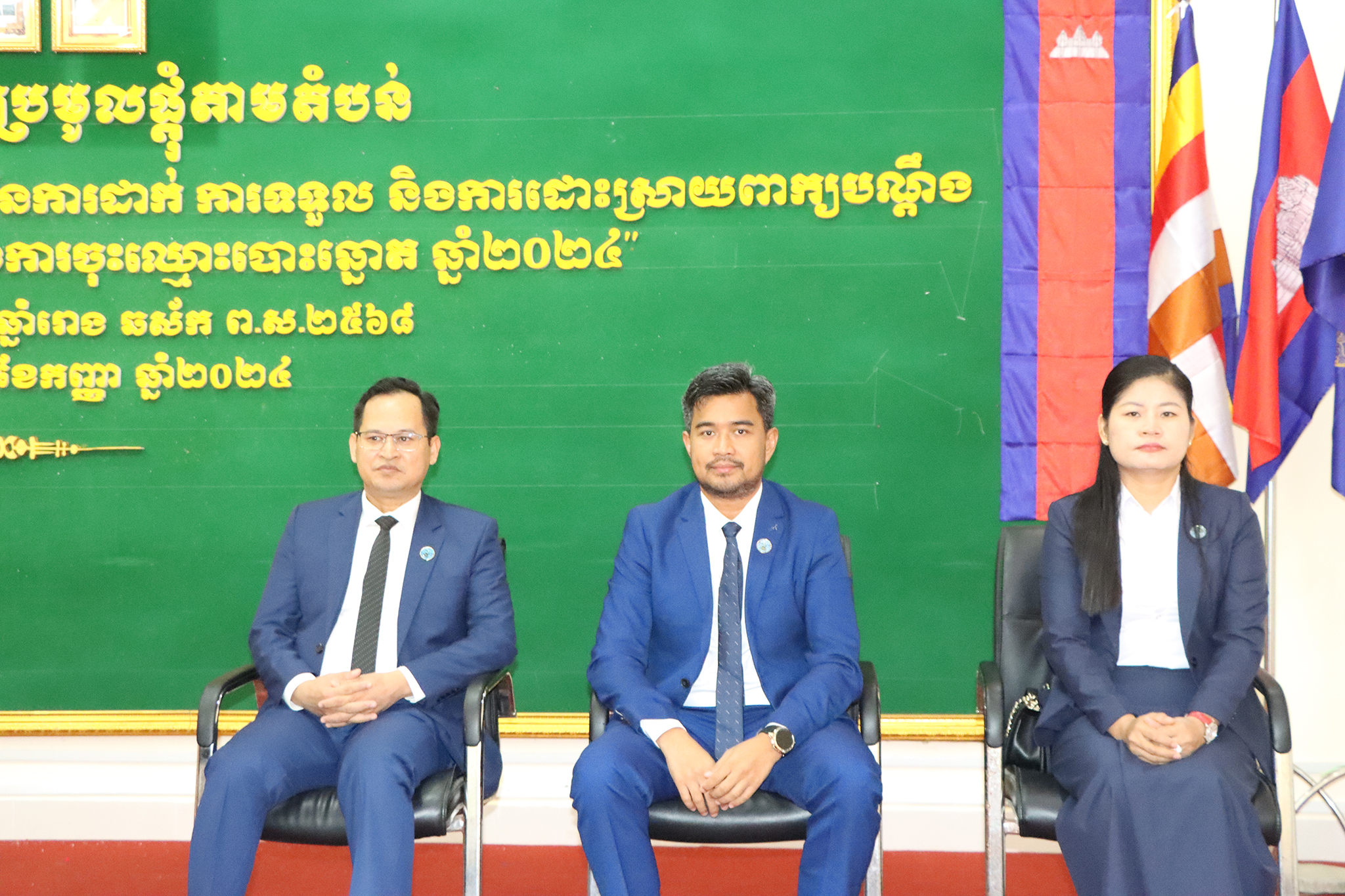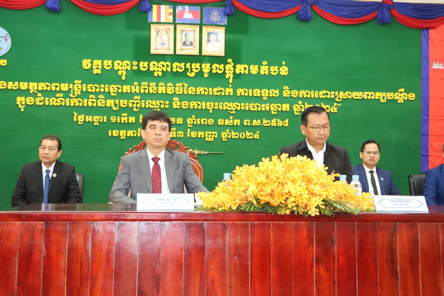 ឯកឧត្ដម តុប ឫទ្ធី អគ្គនាយកនៃអគ្គនាយកដ្ឋានសេវាកម្មច្បាប់ និងបច្ចេកទេស បានអញ្ជើញជាអធិបតីក្នុងពិធីបើកវគ្គបណ្តុះបណ្តាលប្រមូលផ្តុំតាមតំបន់ ស្តីពីការពង្រឹងសមត្ថភាពមន្ត្រីបោះឆ្នោតអំពីនីតិវិធីនៃការដាក់ ការទទួល និងការដោះស្រាយពាក្យបណ្តឹង ក្នុងដំណើរការពិនិត្យបញ្ជីឈ្មោះ និងការចុះឈ្មោះបោះឆ្នោត ឆ្នាំ២០២៤ នៅទីរួមខេត្តតាកែវ នាព្រឹកថ្ងៃទី៣ ខែកញ្ញា ឆ្នាំ២០២៤។
