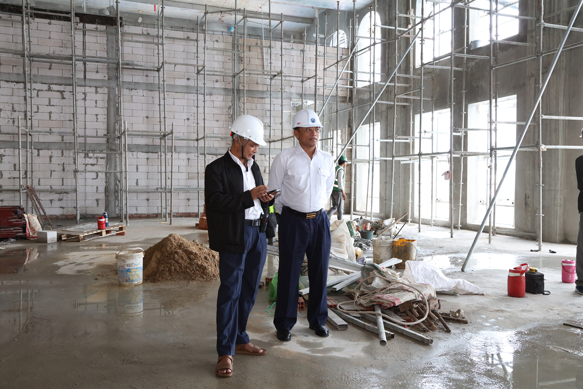 រូបភាពសកម្មភាព ឯកឧត្ដម ទេព នីថា អគ្គលេខាធិការ គ.ជ.ប បានដឹកនាំមន្ត្រីជាន់ខ្ពស់ គ.ជ.ប ចុះត្រួតពិនិត្យវឌ្ឍនភាពនៃការសាងសង់អគាររដ្ឋបាលថ្មីរបស់ គ.ជ.ប ដែលស្ថិតនៅភូមិ៥ សង្កាត់ទន្លេបាសាក់ ខណ្ឌចំការមន រាជធានីភ្នំពេញ នាព្រឹកថ្ងៃទី៣ ខែកញ្ញា ឆ្នាំ២០២៤