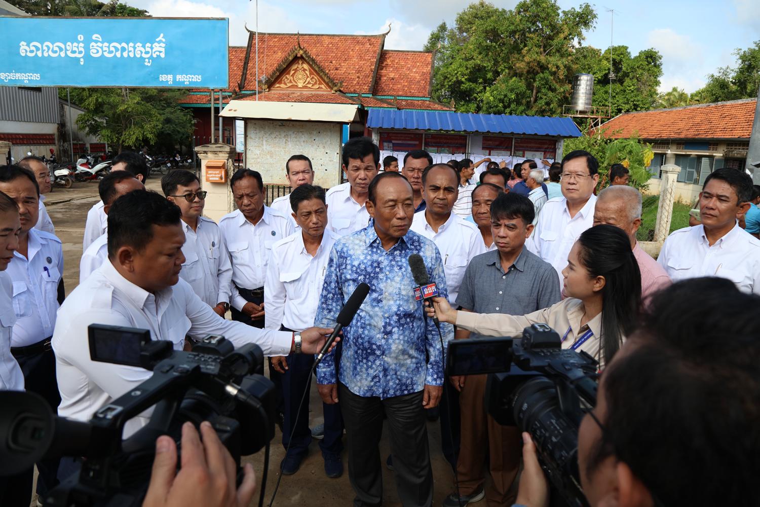 ឯកឧត្ដម ប្រាជ្ញ ចន្ទ ប្រធានគណៈកម្មាធិការជាតិរៀបចំការបោះឆ្នោត បានអញ្ជើញចុះត្រួតពិនិត្យដំណើរការនៃការបិទផ្សាយបញ្ជីបោះឆ្នោតដំបូង និងបញ្ជីឈ្មោះអ្នកបោះឆ្នោតដែលនឹងត្រូវលុបចេញពីបញ្ជីបោះឆ្នោត ឆ្នាំ២០២៤ នៅតាមឃុំ សង្កាត់មួយចំនួនក្នុងខេត្តកណ្ដាល នាព្រឹកថ្ងៃទី២៤ ខែតុលា ឆ្នាំ២០២៤