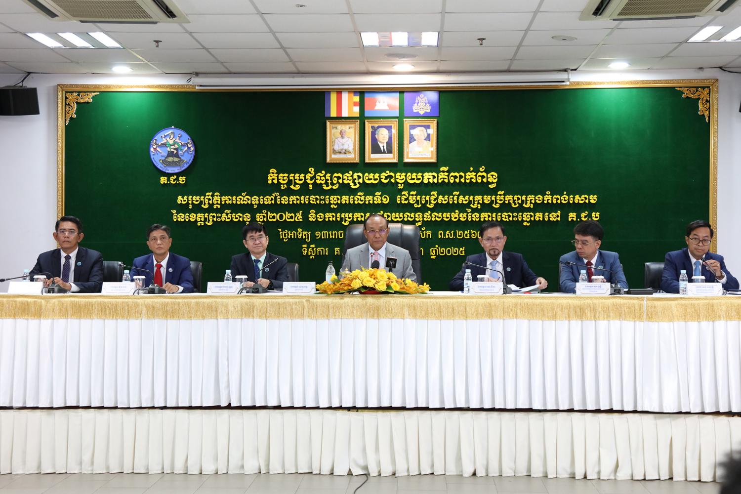 ឯកឧត្តម ប្រាជ្ញ ចន្ទ ប្រធាន គ.ជ.ប បានដឹកនាំកិច្ចប្រជុំផ្សព្វផ្សាយជាមួយភាគីពាក់ព័ន្ធ ស្ដីពីការសរុបព្រឹត្តិការណ៍ទូទៅនៃការបោះឆ្នោតលើកទី១ ដើម្បីជ្រើសរើសក្រុមប្រឹក្សាក្រុងកំពង់សោម នៃខេត្តព្រះសីហនុ ឆ្នាំ២០២៥ និងការប្រកាសផ្សាយលទ្ធផលបឋមនៃការបោះឆ្នោតនៅ គ.ជ.ប នារសៀលថ្ងៃទី២៦ ខែមករា ឆ្នាំ២០២៥