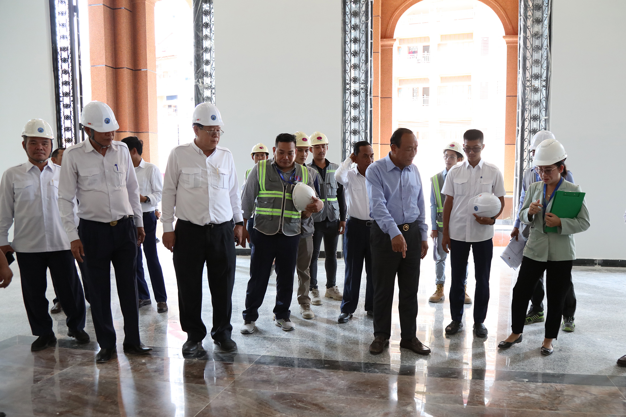 រូបភាពសកម្មភាព ឯកឧត្ដម ប្រាជ្ញ ចន្ទ ប្រធានគណៈកម្មាធិការជាតិរៀបចំការបោះឆ្នោត (គ.ជ.ប) បានអញ្ជើញចុះត្រួតពិនិត្យវឌ្ឍនភាពនៃការសាងសង់អគាររដ្ឋបាលថ្មីរបស់ គ.ជ.ប ដែលស្ថិតនៅភូមិ៥ សង្កាត់ទន្លេបាសាក់ ខណ្ឌចំការមន រាជធានីភ្នំពេញ នាព្រឹកថ្ងៃទី២ ខែឧសភា ឆ្នាំ២០២៥