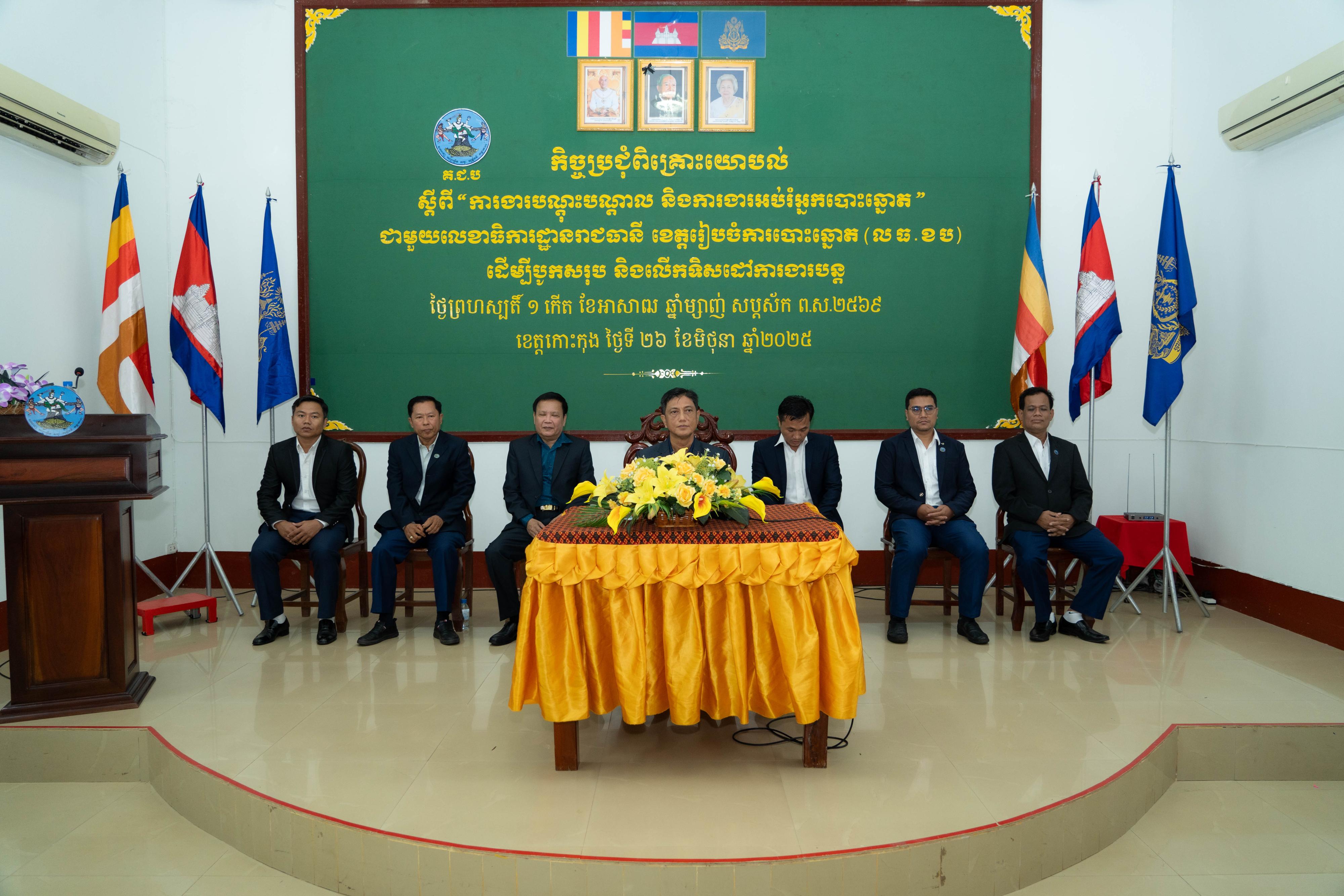 ឯកឧត្ដម ម៉ុក ដារ៉ា អគ្គលេខាធិការរង គ.ជ.ប បានអញ្ជើញជាអធិបតីភាពក្នុងពិធីបិទកិច្ចប្រជុំពិគ្រោះយោបល់ ស្ដីពី “ការងារបណ្ដុះបណ្ដាល និងការងារអប់រំអ្នកបោះឆ្នោត” ជាមួយលេខាធិការដ្ឋានរាជធានី ខេត្តរៀបចំការបោះឆ្នោត (លធ.ខប) ដើម្បីបូកសរុប និងលើកទិសដៅការងារបន្ដ នៅខេត្តកោះកុង នាថ្ងៃទី២៦ ខែមិថុនា ឆ្នាំ២០២៥