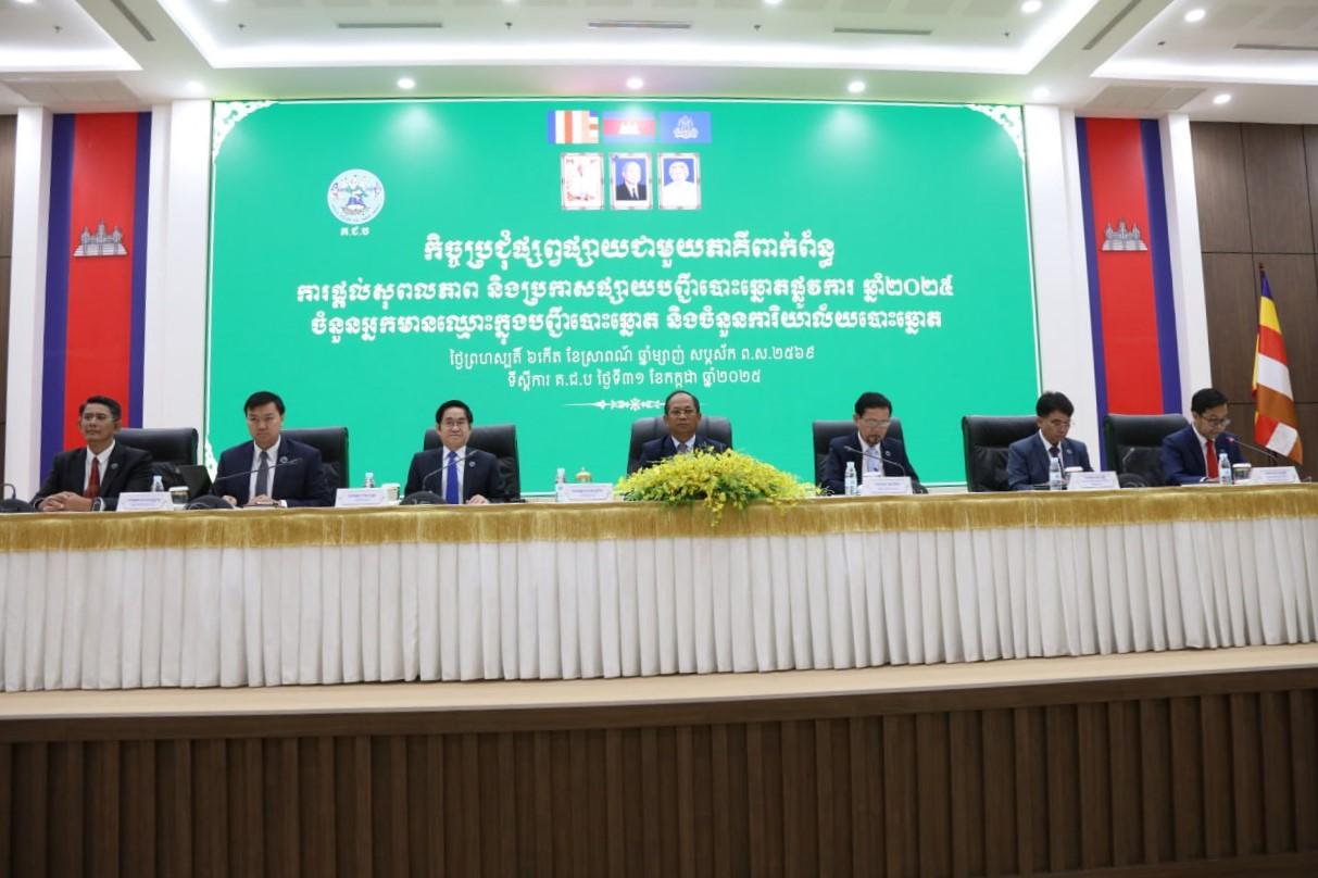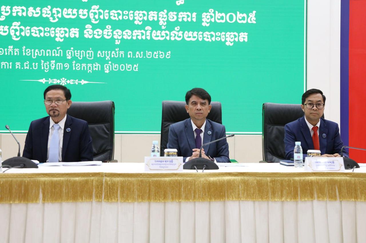 រូបភាពសកម្មភាព ឯកឧត្តម សោម សូរីដា សមាជិក គ.ជ.ប បានដឹកនាំកិច្ចប្រជុំផ្សព្វផ្សាយជាមួយភាគីពាក់ព័ន្ធ ស្តីពីការផ្តល់សុពលភាព និងប្រកាសផ្សាយបញ្ជីបោះឆ្នោតផ្លូវការ ឆ្នាំ២០២៥ នៅទីស្ដីការ គ.ជ.ប នាព្រឹកថ្ងៃទី៣១ ខែកក្កដា ឆ្នាំ២០២៥