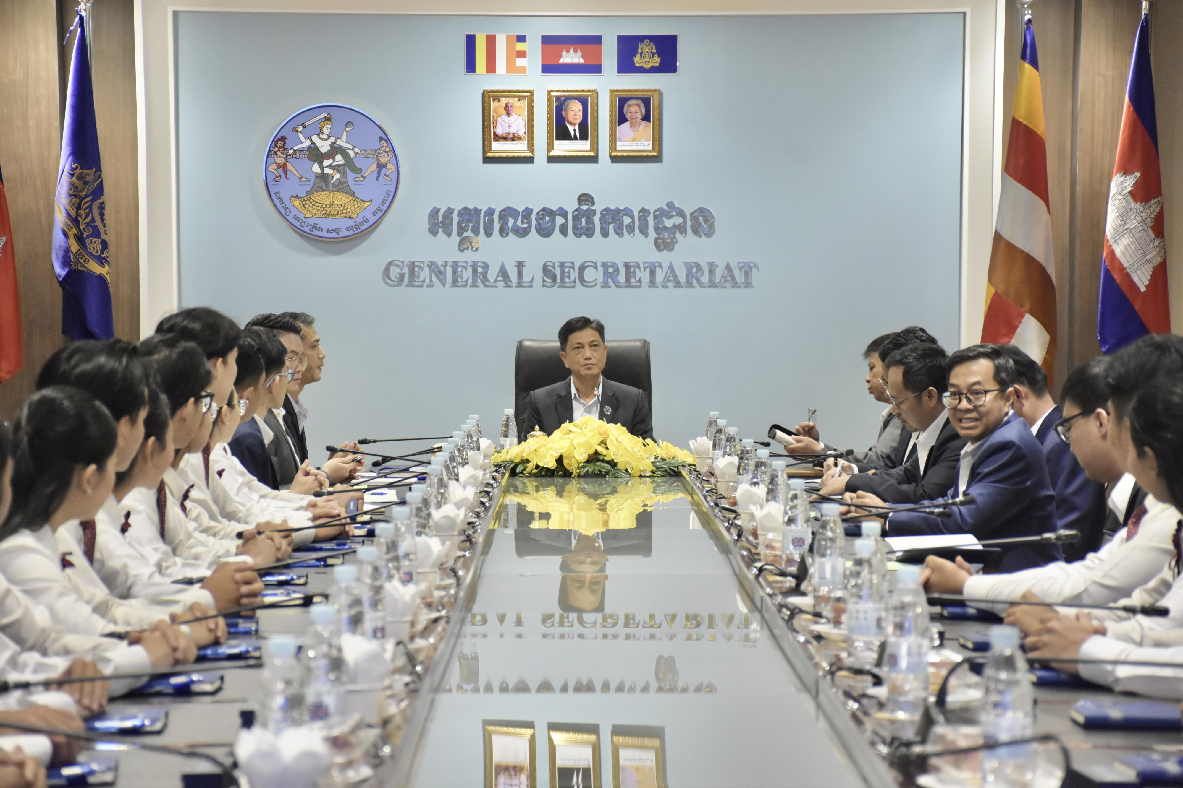 ឯកឧត្ដម ម៉ុក ដារ៉ា អគ្គលេខាធិការរង គ.ជ.ប និងថ្នាក់ដឹកនាំអគ្គនាយកដ្ឋាន នាយកដ្ឋាន និងលេខាធិការដ្ឋាននៃអគ្គលេខាធិការដ្ឋាន គ.ជ.ប បានទទួលជួបសមាគមនាវាយុវជនអាស៊ីអាគ្នេយ៍កម្ពុជា សម្រាប់ការស្វែងយល់អំពីការបោះឆ្នោតនៅកម្ពុជា នាព្រឹកថ្ងៃទី២១ ខែវិច្ឆិកា ឆ្នាំ២០២៥ នៅទីស្ដីការ គ.ជ.ប