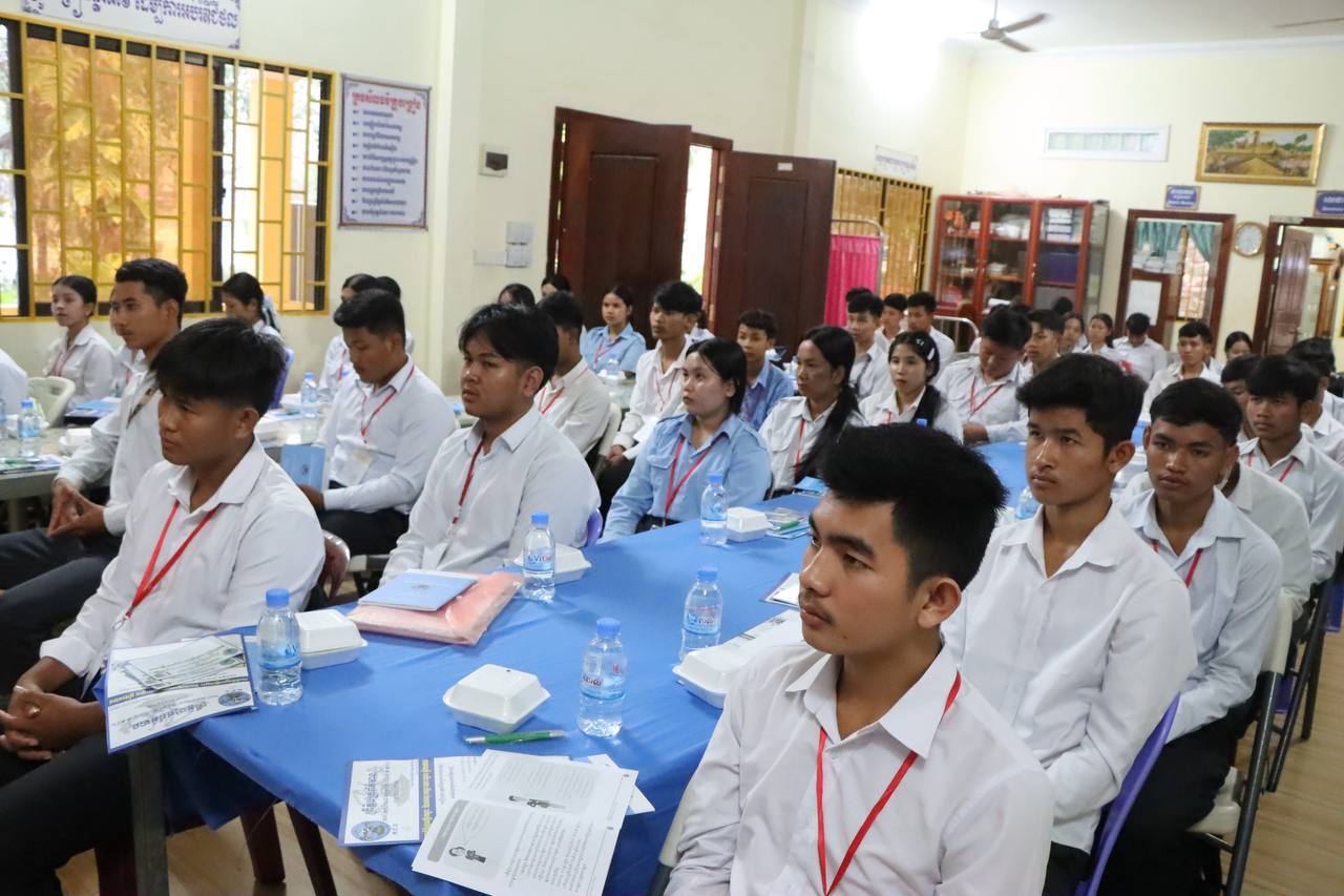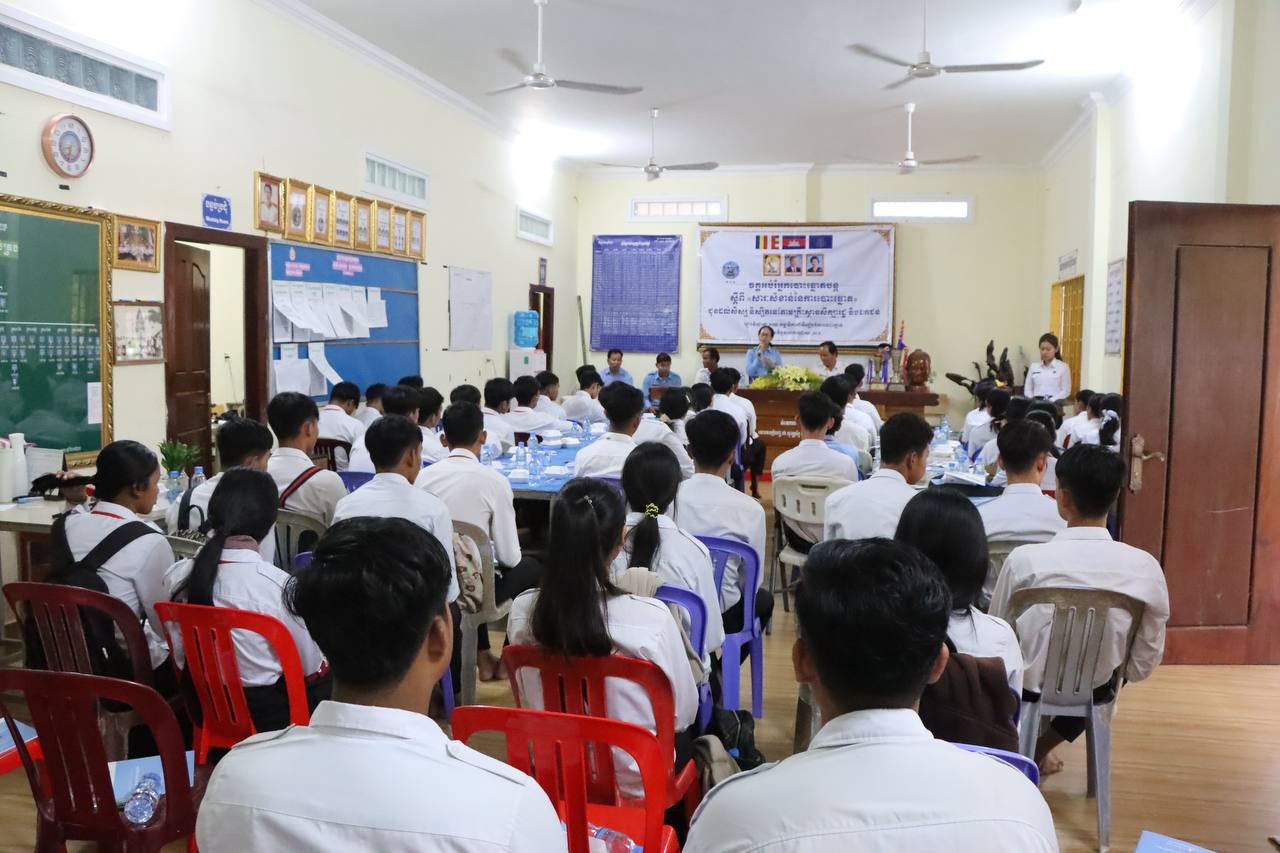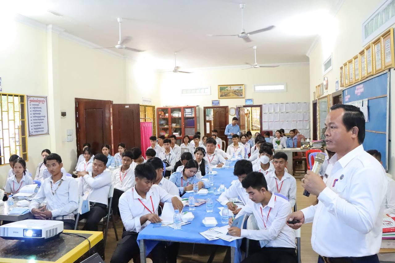 រូបភាពសកម្មភាពលេខាធិការដ្ឋានរៀបចំការបោះឆ្នោតខេត្តតាកែវ រៀបចំវគ្គអប់រំអ្នកបោះឆ្នោតបន្តស្ដីពី «សារៈសំខាន់នៃការបោះឆ្នោត» ជូនដល់សិស្សានុសិស្សថ្នាក់ទី១២ នៅវិទ្យាល័យគិរីវង់ ក្នុងខេត្តតាកែវ នាព្រឹកថ្ងៃទី៦ ខែមីនា ឆ្នាំ២០២៦