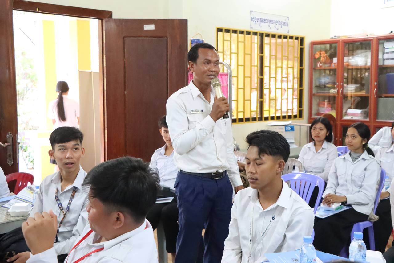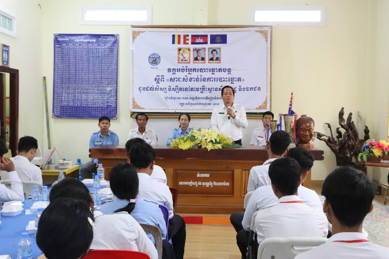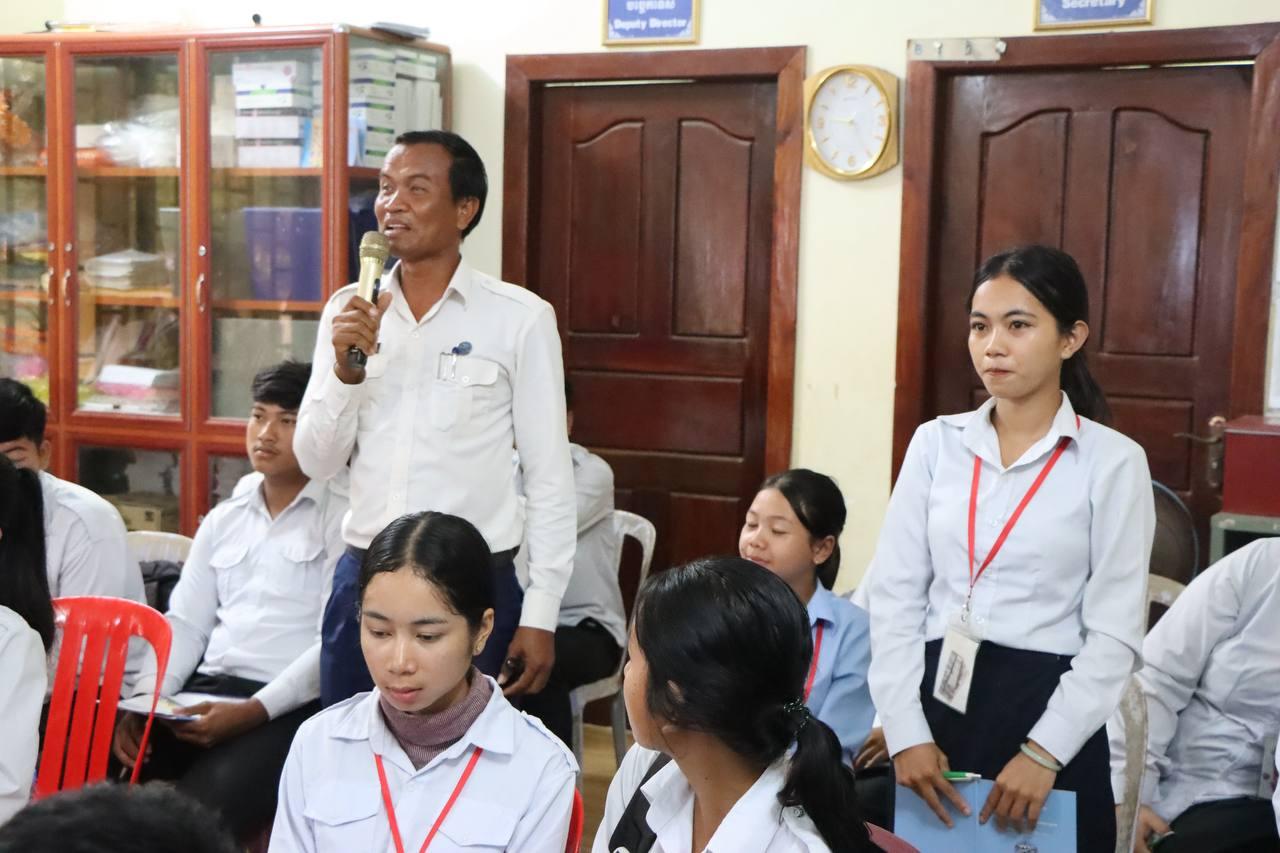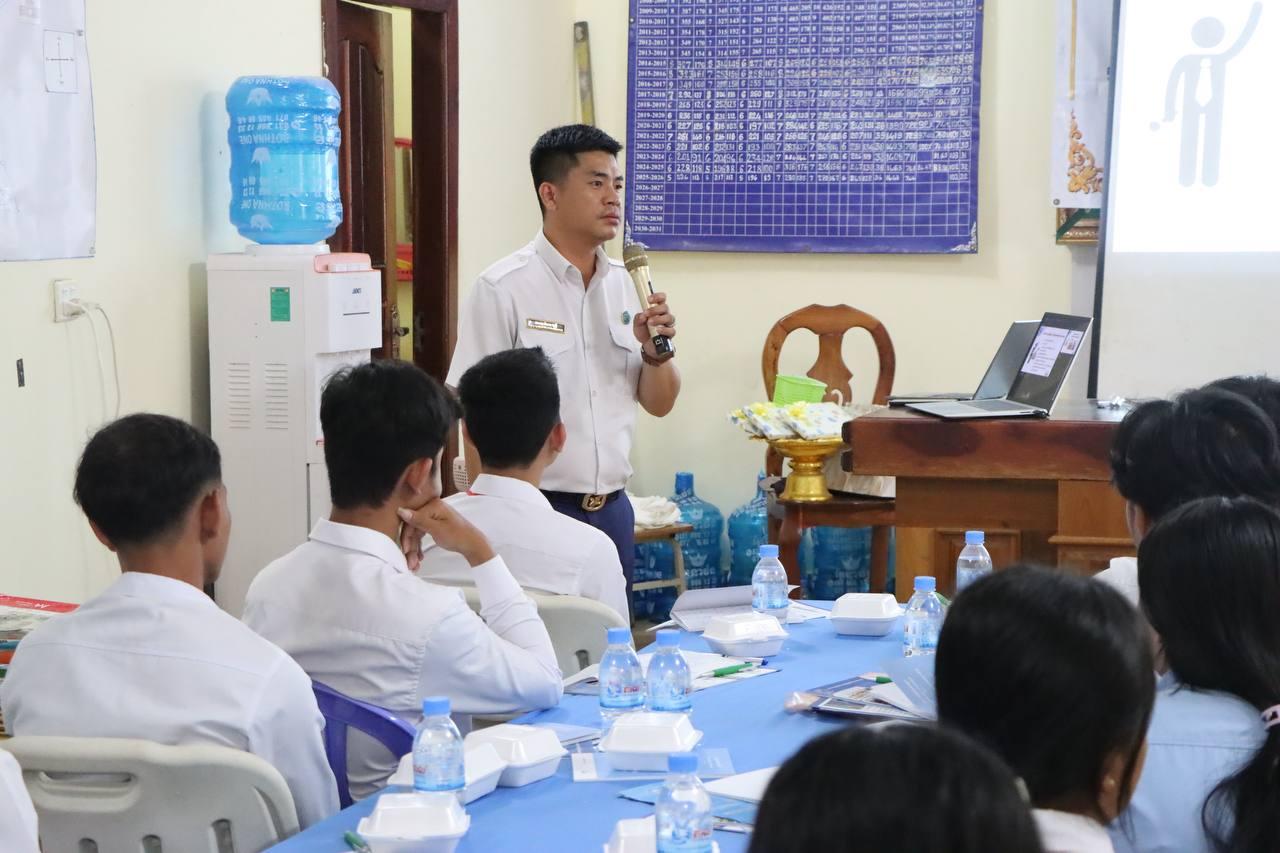 រូបភាពសកម្មភាពលេខាធិការដ្ឋានរៀបចំការបោះឆ្នោតខេត្តតាកែវ រៀបចំវគ្គអប់រំអ្នកបោះឆ្នោតបន្តស្ដីពី «សារៈសំខាន់នៃការបោះឆ្នោត» ជូនដល់សិស្សានុសិស្សថ្នាក់ទី១២ នៅវិទ្យាល័យគិរីវង់ ក្នុងខេត្តតាកែវ នាព្រឹកថ្ងៃទី៦ ខែមីនា ឆ្នាំ២០២៦