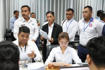 រូបភាពសកម្មភាព គ.ជ.ប ត្រួតពិនិត្យ និងផ្ទៀងផ្ទាត់បញ្ជាក់អំពីភាពត្រឹមត្រូវលើលទ្ធផលនៃការបោះឆ្នោតតាមមណ្ឌលបោះឆ្នោតរាជធានី ខេត្តនីមួយៗ នាព្រឹកថ្ងៃទី២៩ ខែកក្កដា ឆ្នាំ២០២៣ នៅទីស្ដីការ គ.ជ.ប។