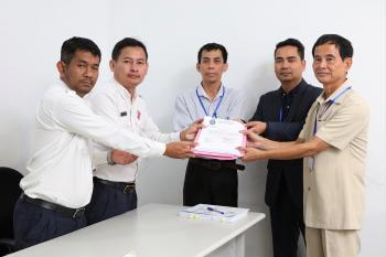 រូបភាពសកម្មភាពនៃការទទួលពាក្យសុំចុះបញ្ជីគណបក្សនយោបាយឈរឈ្មោះបោះឆ្នោត និងបញ្ជីបេក្ខជនឈរឈ្មោះ របស់គណបក្សហ៊្វុនស៊ិនប៉ិច សម្រាប់ការបោះឆ្នោតជ្រើសតាំងតំណាងរាស្ត្រ នីតិកាលទី៧ ឆ្នាំ២០២៣ នៅទីស្ដីការ គ.ជ.ប នារសៀលថ្ងៃទី១ ខែឧសភា ឆ្នាំ២០២៣