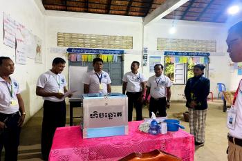 រូបភាពសកម្មភាព លោក ទូច សុជារ៉ា ប្រធាននាយកដ្ឋានបណ្ដុះបណ្ដាល និងអប់រំអ្នកបោះឆ្នោត អញ្ជើញជាអធិបតី ក្នុងពិធីបើកវគ្គបណ្ដុះបណ្ដាលស្ដីពីការឃោសនាបោះឆ្នោត ការបោះឆ្នោត ការរាប់សន្លឹកឆ្នោត និងការប្រកាសផ្សាយលទ្ធផលនៃការបោះឆ្នោតលើកទី១ (ការបោះឆ្នោតឡើងវិញ)...