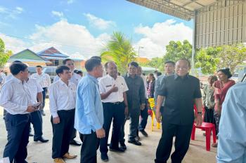 រូបភាពសកម្មភាព ឯកឧត្ដម ប្រាជ្ញ ចន្ទ ប្រធាន គ.ជ.ប បានអញ្ជើញចុះពិនិត្យមើលដំណើរការនៃការពិនិត្យបញ្ជីឈ្មោះ និងការចុះឈ្មោះបោះឆ្នោត នៅការិយាល័យចល័ត ក្នុងភូមិថ្មី ឃុំពាមរាំង ស្រុកលើកដែក ខេត្តកណ្ដាល នាព្រឹកថ្ងៃទី១១ ខែឧសភា ឆ្នាំ២០២៥