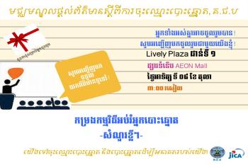 មជ្ឈមណ្ឌលព័ត៌មានស្តីពីការចុះឈ្មោះបោះឆ្នោតដែលមានទីតាំងនៅ Lively Plaza ជាន់ទី១ នៃផ្សារទំនើប AEON នឹងមានរៀបចំកម្រងកម្មវិធីអប់រំអ្នកបោះឆ្នោតដែលមានជា សំណួរខ្លីៗជូនដល់អ្នកចូលរួម