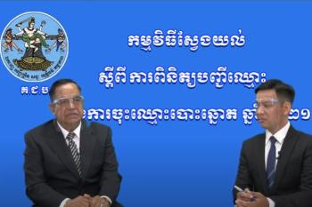 វីដេអូកម្មវិធីស្វែងយល់ ស្ដីពីការពិនិត្យបញ្ជីឈ្មោះ និងការចុះឈ្មោះបោះឆ្នោត ឆ្នាំ២០២១ ក្រោមប្រធានបទ "ការជំរុញការចូលរួមរបស់ប្រជាពលរដ្ឋ ក្នុងដំណើរការពិនិត្យបញ្ជីឈ្មោះ និងការចុះឈ្មោះបោះឆ្នោតក្នុងបរិបទកូវីដ ១៩"